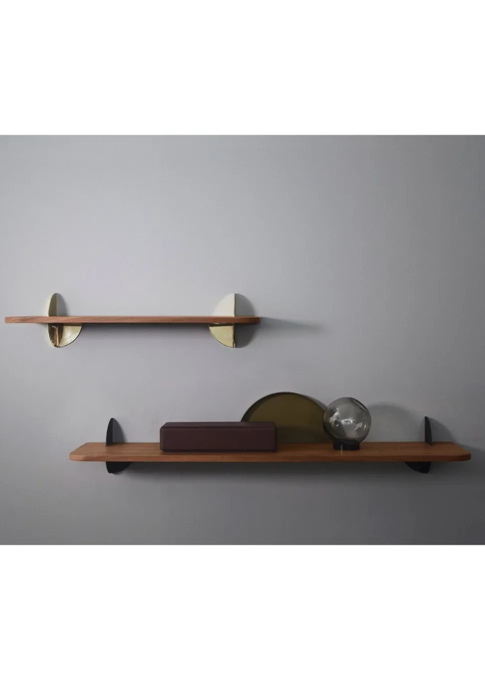 AEDES Regale von Danish sind eine wunderschöne Serie von Regalen aus köstlichem Nussbaum und Esche, kombiniert mit Gold und pulverbeschichtetem Eisen. Die schönen Matrialien spielen auf klassische und elegante Weise zusammen und machen das Regal zu einem Möbelstück, das in jedes Zuhause passt. Verwenden Sie ihn als Wandtisch im Schlafzimmer oder als Regal, um Ihre Lieblingsgegenstände und Blumen zu verstauen.