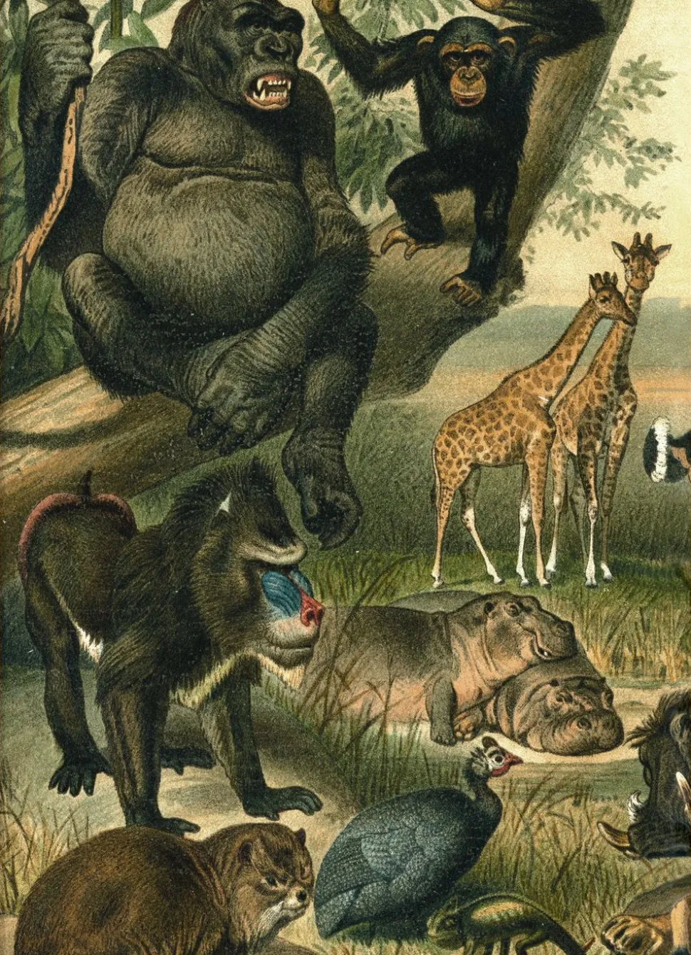 Diese (links) gedruckte Ausgabe feiert die schöne afrikanische Fauna und ist ein Muss für jeden, der die Tiere in Afrika liebt. Die Originalbilder stammen aus dem 18. Jahrhundert.