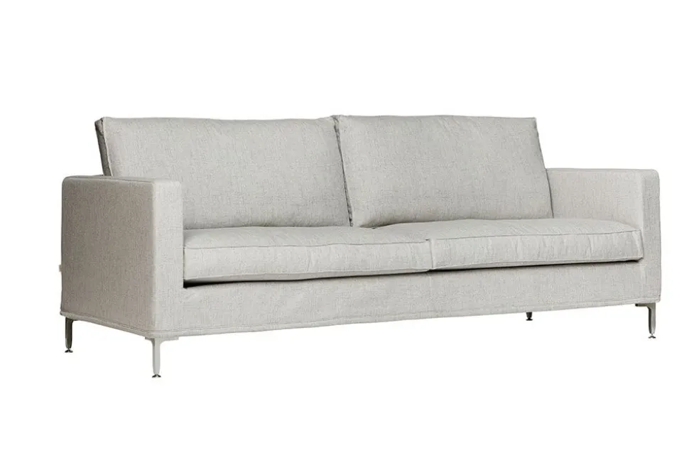 - Untergestell in Eiche, Buche oder gebürstetem Aluminium mit massiver Eichenkonstruktion, gepolstert mit Kaltschaum, Baumwollwatte und Nozag-Federn. Kissen gepolstert mit Kaltschaum, Polyether und Federn.