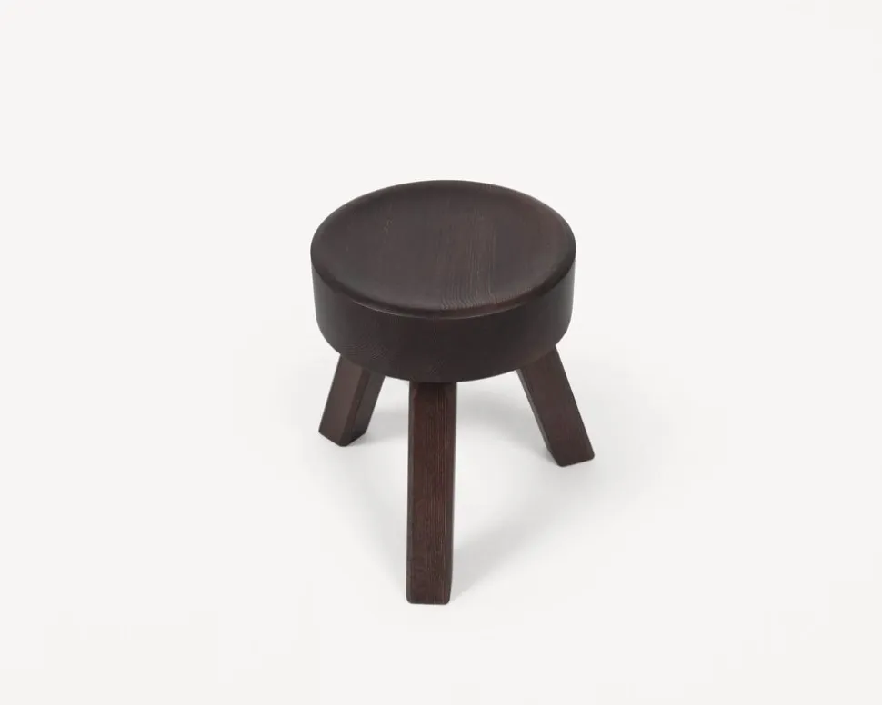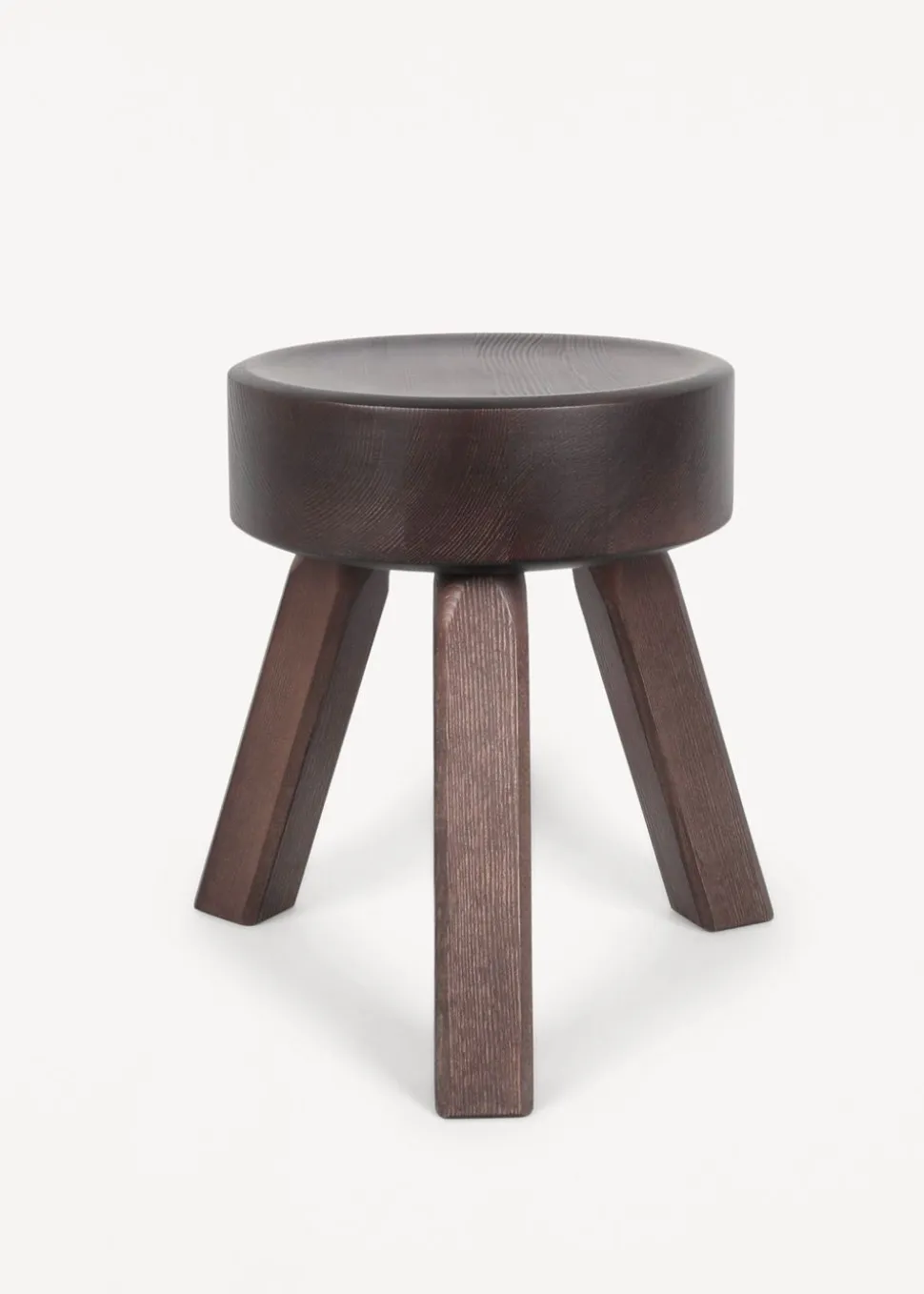 Andreas Löfs AML Hocker komprimiert ein robustes Möbelstück in kleine Formate, wobei dunkles Kiefernholz einen Kontrast zum klassischen nordischen Design bildet. Das universelle Design des Hockers verleiht ihm einen multifunktionalen Zweck, wo er als Beistelltisch, Pflanzenständer oder als zusätzlicher Sitzplatz in der Eingangshalle oder im Schlafzimmer dienen kann.