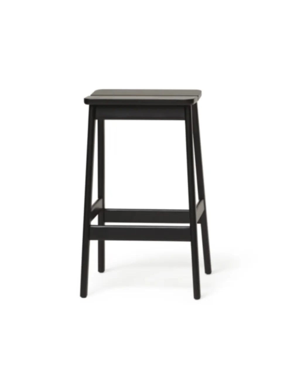 DerAngle Standard Barhocker von Form & Refine hat einen einfachen und eleganten Look mit einer starken geometrischen Form. Er ist aus massivem Buchenholz gefertigt und hat eine schöne Oberfläche, die gut zu einer modernen und minimalistischen Inneneinrichtung passt. Mit seinem schlichten und einfachen Design passt er perfekt in eine Küche, eine Bar oder einen Stehtisch und bietet ein komfortables Sitzerlebnis.