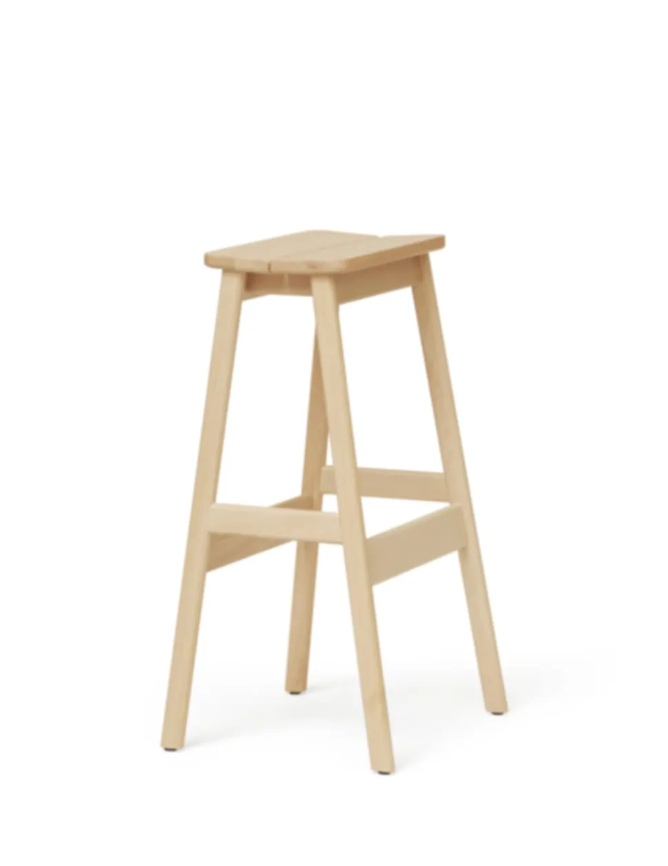 DerAngle Standard Barhocker von Form & Refine hat einen einfachen und eleganten Look mit einer starken geometrischen Form. Er ist aus massivem Buchenholz gefertigt und hat eine schöne Oberfläche, die gut zu einer modernen und minimalistischen Inneneinrichtung passt. Mit seinem schlichten und einfachen Design passt er perfekt in eine Küche, eine Bar oder einen Stehtisch und bietet ein komfortables Sitzerlebnis.