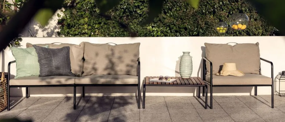 Dieses Sofa ist nicht nur ein Möbelstück, sondern ein multifunktionales Kunstwerk, das zum Entspannen und geselligen Beisammensein im Freien einlädt. Das AVON 2-Sitzer-Sofa eignet sich perfekt, um gemütliche Oasen im Freien zu schaffen, wo seine schlichte Eleganz mit anderen Elementen von kombiniert werden kann, um einen zusammenhängenden und einladenden Außenbereich zu schaffen. Styling-Tipps: Kombinieren Sie das Sofa mit minimalistischen Holzmöbeln oder farbenfrohen Textilien, um sein skandinavisches Design zu unterstreichen und Ihrem Garten oder Ihrer Terrasse eine persönliche Note zu verleihen.