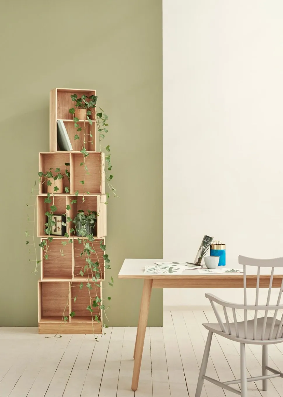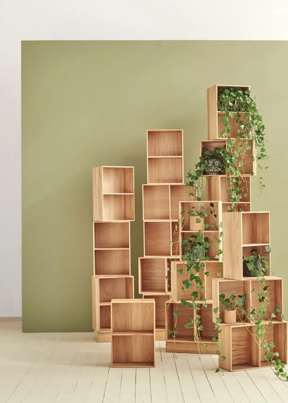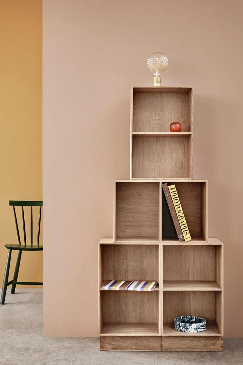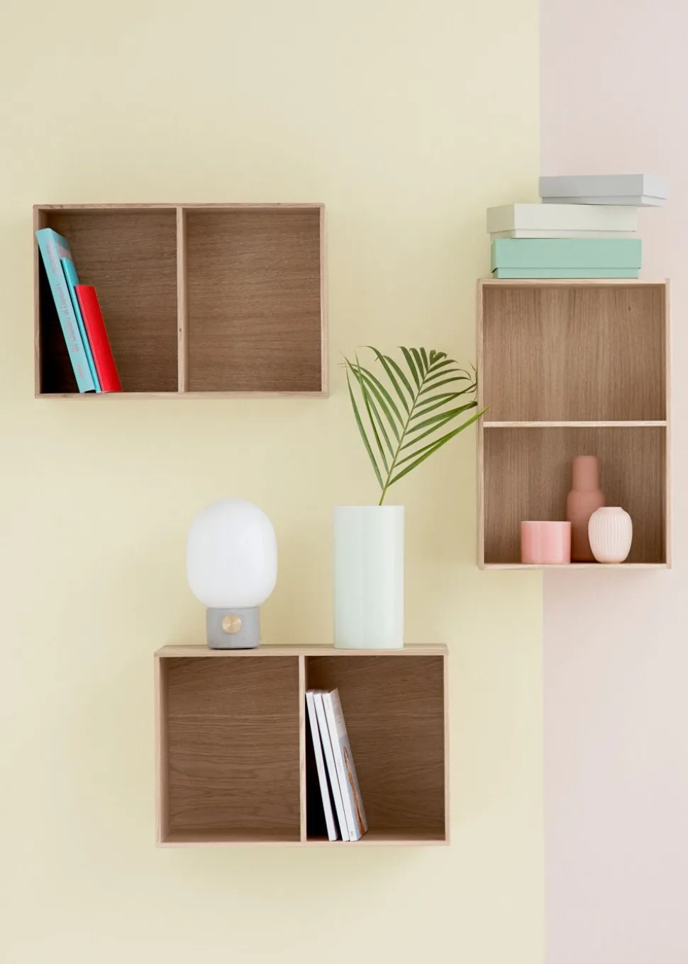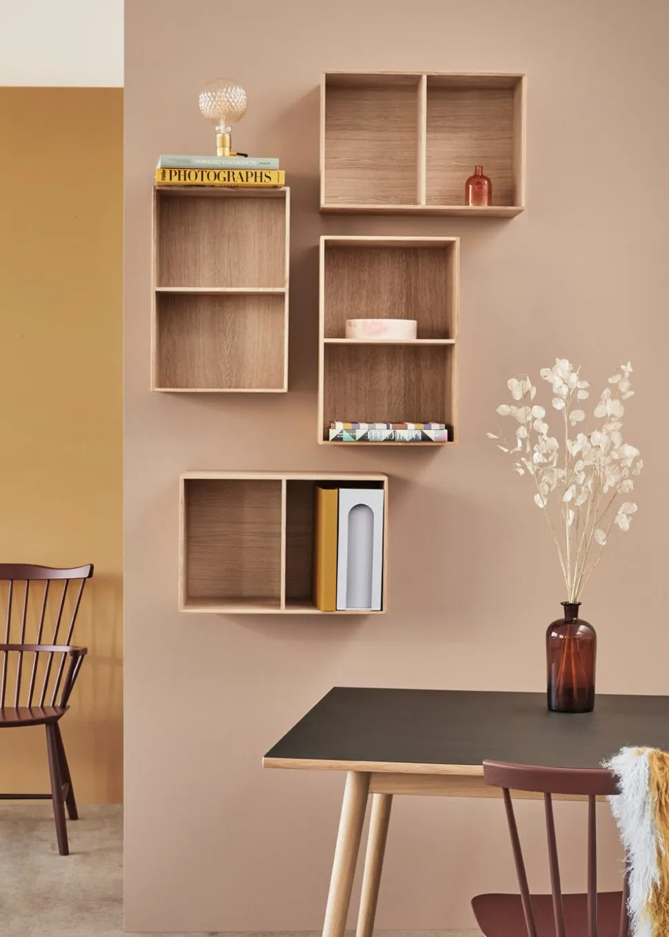Klassisches Bücherregal, entworfen von Mogens Koch im Jahr 1944. Das Regal hat ein einfaches und völlig minimalistisches Design, was einer der Gründe ist, warum die Regale so beliebt geworden sind. Die schlichte, quadratische, zweigeteilte Box kann in jedem Raum und in jeder Wohnung verwendet werden. Hängen Sie es als Regal an die Wand, verwenden Sie es zur Aufbewahrung verschiedener Gegenstände oder kombinieren Sie mehrere der beiden Größen miteinander, um ein größeres Regal zu schaffen. Mit diesem Möbelstück eröffnen sich ganz neue Möglichkeiten der Aufbewahrung.