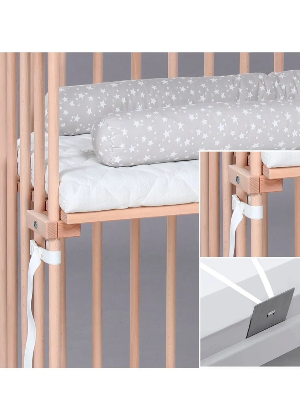 Der babybay Boxspring Co-Sleeper von babybay ist ein schönes und vielseitiges Beistellbett, das perfekt zu Ihrem Bett passt. Er ist in der Höhe verstellbar, so dass er genau an Ihr Bett angepasst werden kann und gewährleistet, dass es keine Lücke oder Höhenunterschiede zwischen den beiden Betten gibt. Es ist die ideale Lösung, um Ihr Baby während des Schlafs in Ihrer Nähe zu haben.