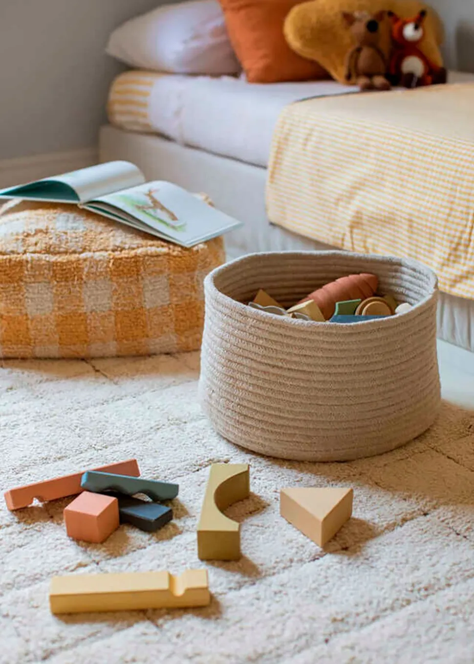 Der Korb Gram von ist ein dekorativer und praktischer Aufbewahrungskorb. Der Korb ist Teil der Serie Little Chefs. Der Korb ist aus geflochtenen Baumwollschnüren aus recycelten PET-Flaschen handgefertigt. Stellen Sie den Korb im Kinderzimmer auf und verwenden Sie ihn, um die Spielsachen, Bücher, Teddybären, Decken usw. Ihres Kindes zu ordnen. Der Korb kann auch anderswo in der Wohnung aufgestellt werden, z. B. in der Küche oder im Wohnzimmer.