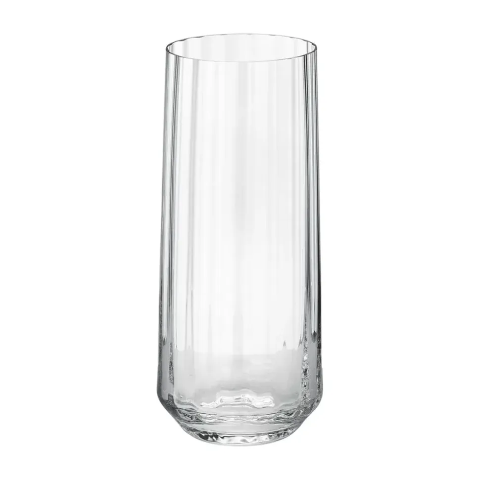 Die Bernadotte Highball-Gläser von strahlen klassische Eleganz aus. Die ikonischen geriffelten Linien sind eine Hommage an Sigvard Bernadottes funktionalistische Designphilosophie. Die aus wunderschönem Kristallglas gefertigten Gläser schaffen ein harmonisches Gleichgewicht zwischen zeitlosem Design und moderner Raffinesse und verleihen jedem Tisch einen Hauch von Luxus.