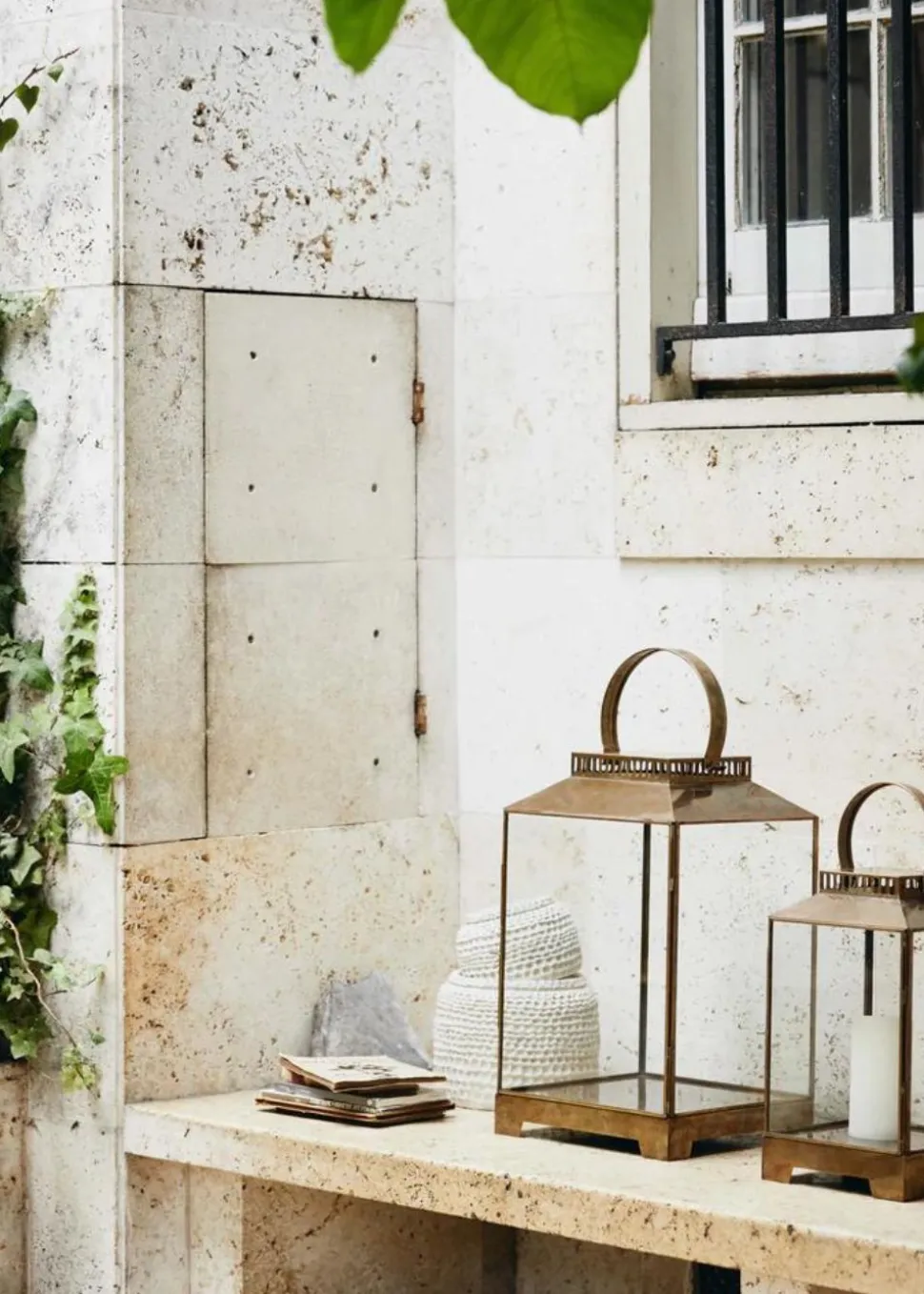 Die LaterneBITRA von ist aus Messing gefertigt und hat einen eleganten Vintage-Look. Die quadratischen Laternen sind rundum verglast, können an einer Seite geöffnet werden und haben oben einen praktischen Griff. Bringen Sie Wärme in Ihr Haus oder machen Sie es sich draußen gemütlich mit den BITRA-Laternen. Die Laternen können für Kerzen oder andere dekorative Accessoires verwendet werden.