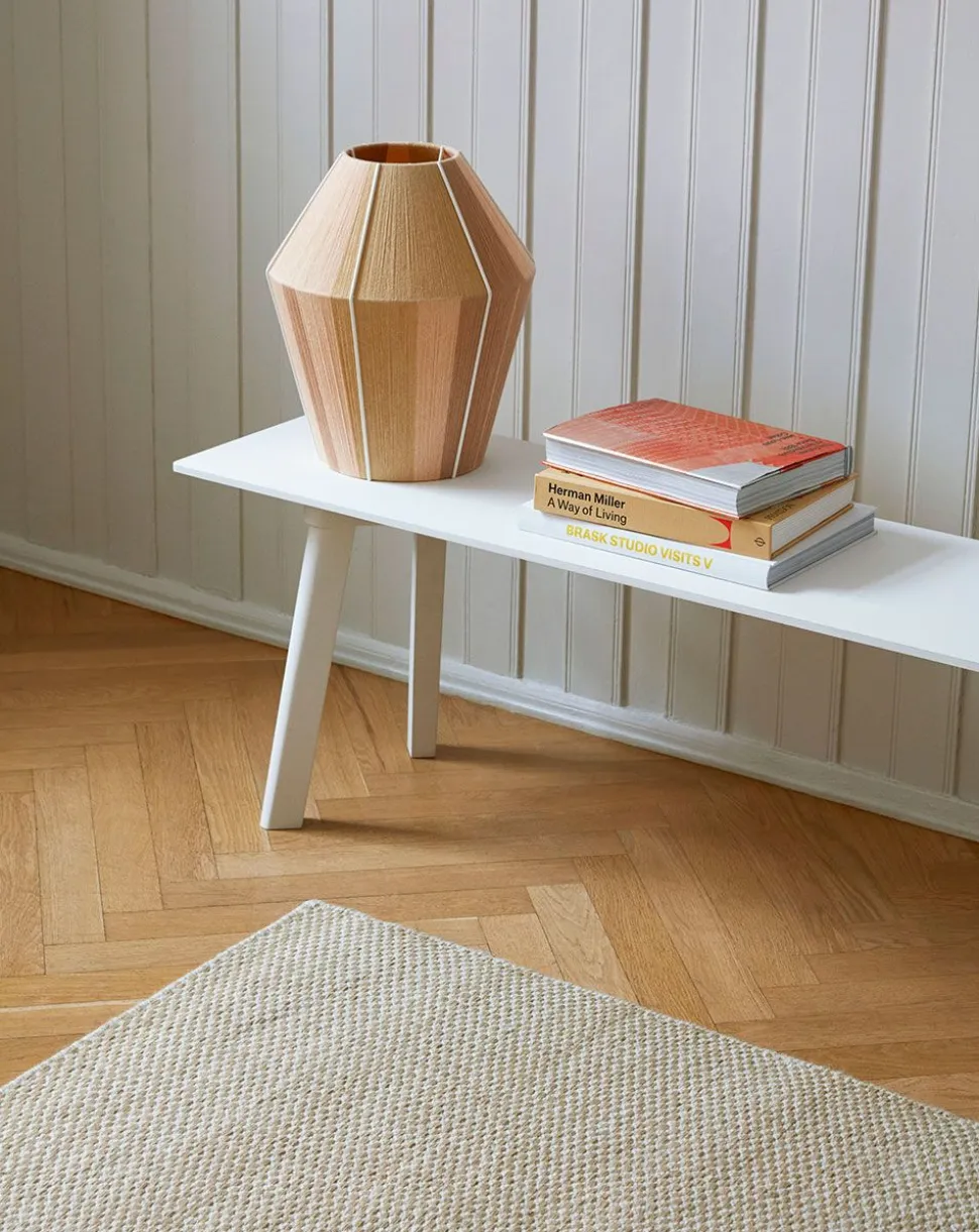 Ein einfacher und äußerst einzigartiger Ausdruck trägt dazu bei, dass Ana Kras‘ BONBON Shade zu einer der meistverkauften Lampen von geworden ist. Dünne, handgewebte Baumwollfäden in schönen organischen Farben sind um einen pulverbeschichteten Stahlrahmen gewoben, der der Lampe ein geometrisches Aussehen verleiht, das perfekt proportioniert ist, um ein weiches und fokussiertes Licht zu erzeugen. Der Lampenschirm kann sowohl für Hänge- als auch für Bodenbeleuchtung gekauft werden, was mehr Möglichkeiten für die Innendekoration und Beleuchtung im ganzen Haus, in jedem beliebigen Raum, schafft.