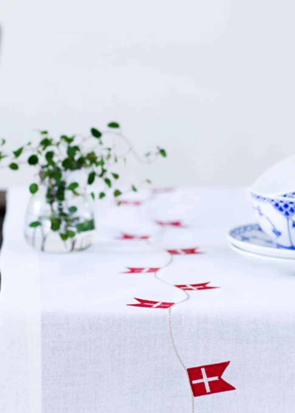 Schöner Tischläufer aus echtem Flaggenstoff, mit gestickter dänischer Flagge aus der Designserie Nordic Way of Celebration. Mit dem Tischläufer können Sie problemlos für Anlässe wie Jubiläen, Abschlussfeiern, Taufen und vieles mehr dekorieren.