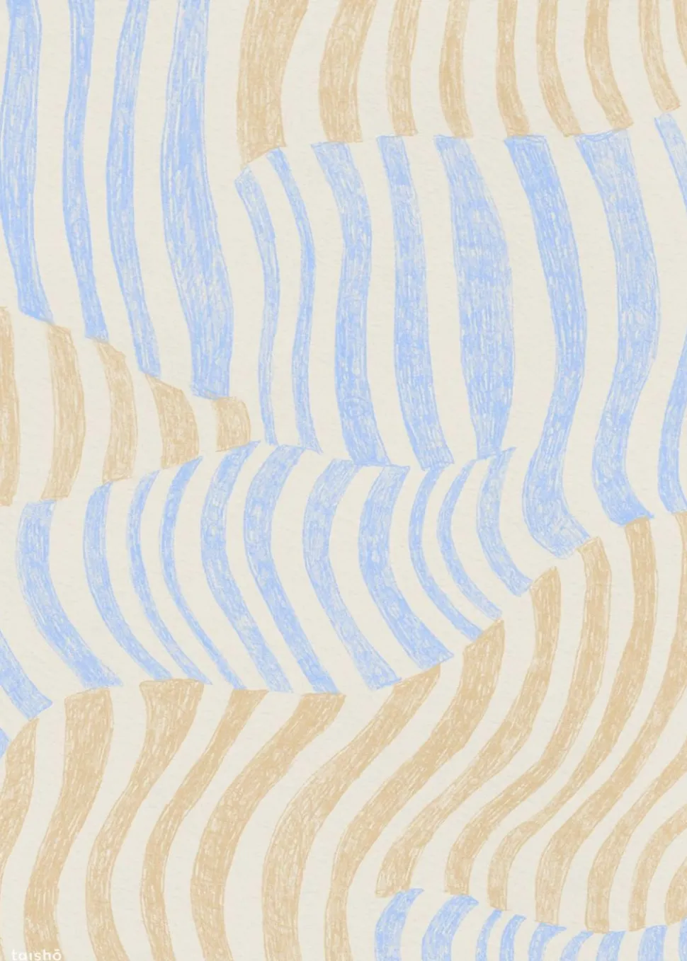 Brudte Striber von Taisho ist ein farbenfrohes und schönes Poster. Sein Motiv zeigt verschiedene Formen, Linien und Farben. Das Poster hat viele schöne Schattierungen wie Pastellgelb und Blau, die Leben und Dynamik in jeden Raum bringen.