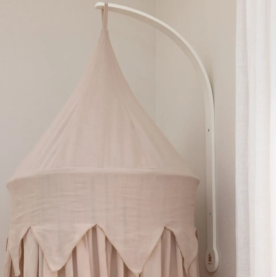 Elegante Wandhalterung aus Holz zum Aufhängen des Betthimmels über dem Babybett bei hohen Decken oder wenn die Decke nicht zum Bohren geeignet ist.