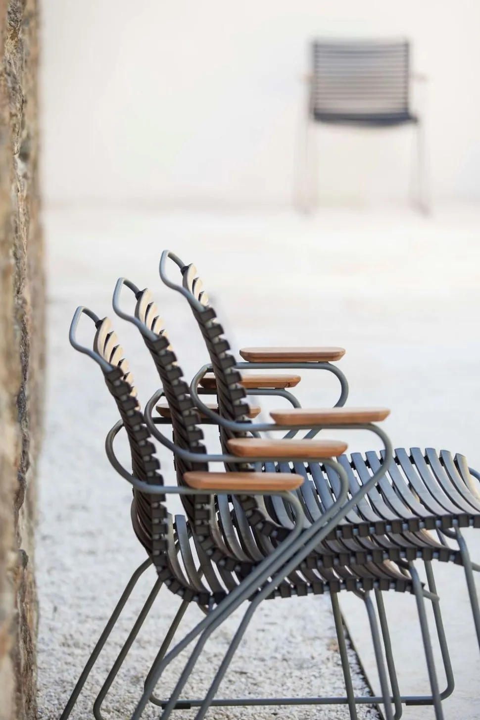 Der CLICK Dining Chair von verbindet Einfachheit, Funktionalität und ergonomisches Design. Der Stuhl hat ein leichtes und modernes Aussehen, wobei die flexiblen Latten für bequemes Sitzen ohne Kissen sorgen. Die austauschbaren Lamellen ermöglichen es, das Aussehen des Stuhles durch das Austauschen oder Mischen von Farben zu individualisieren, was ihn sowohl praktisch als auch spielerisch gestaltet. Mit seinem pulverbeschichteten Metallrahmen und den UV-beständigen Latten ist der Stuhl sowohl für den Innen- als auch für den Außenbereich geeignet.