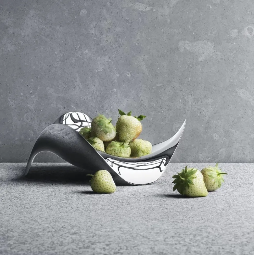 Bei der COBRA-Schale“ trifft Funktion auf Kunst. Über ihren eigentlichen Verwendungszweck hinaus ist sie ein Blickfang, der mit seiner ruhigen Präsenz jeden Tisch oder jede Auslage bereichert. Um ein harmonisches Tableau zu schaffen, sollten Sie sie mit zartem Steingut und feinem Porzellan aus unserer sorgfältig ausgewählten Kollektion kombinieren. Das wellenförmige Design der Schale lädt Textilien mit sanftem Faltenwurf und weichem Gewebe dazu ein, eine zusammenhängende visuelle Erzählung in Ihrem Raum zu schaffen. Ein Hauch von silberfarbenem Dekor oder minimalistischen Skulpturen unterstreicht die Pracht der Schale. Schließlich sind es gerade diese Details, die eine bezaubernde Stimmung in die Inneneinrichtung zaubern.