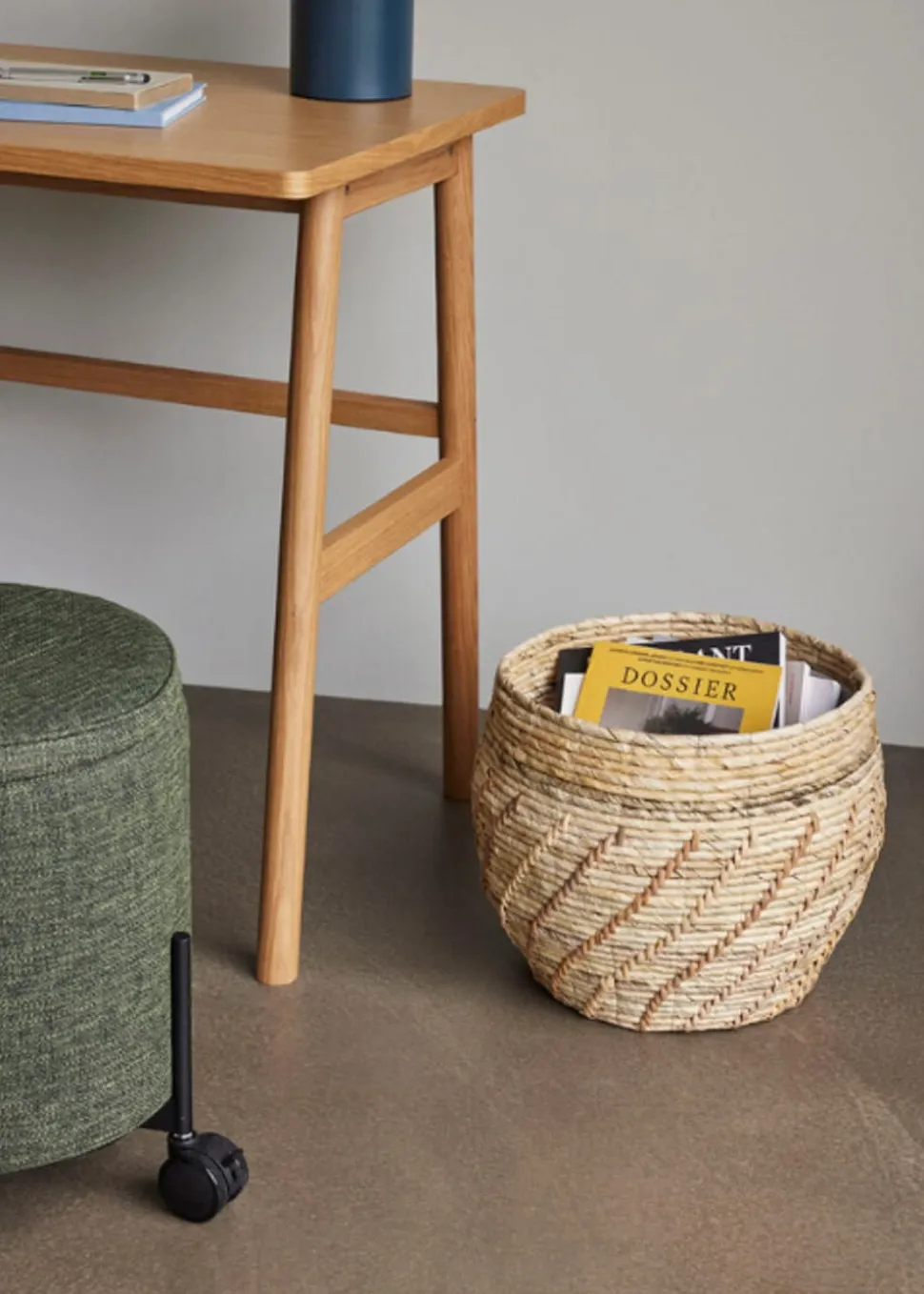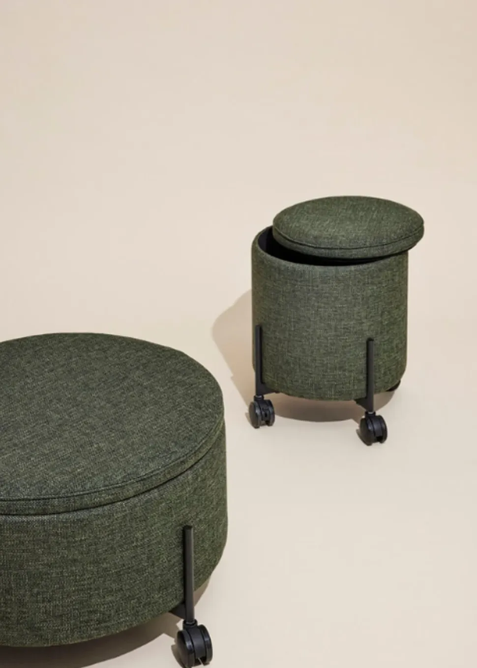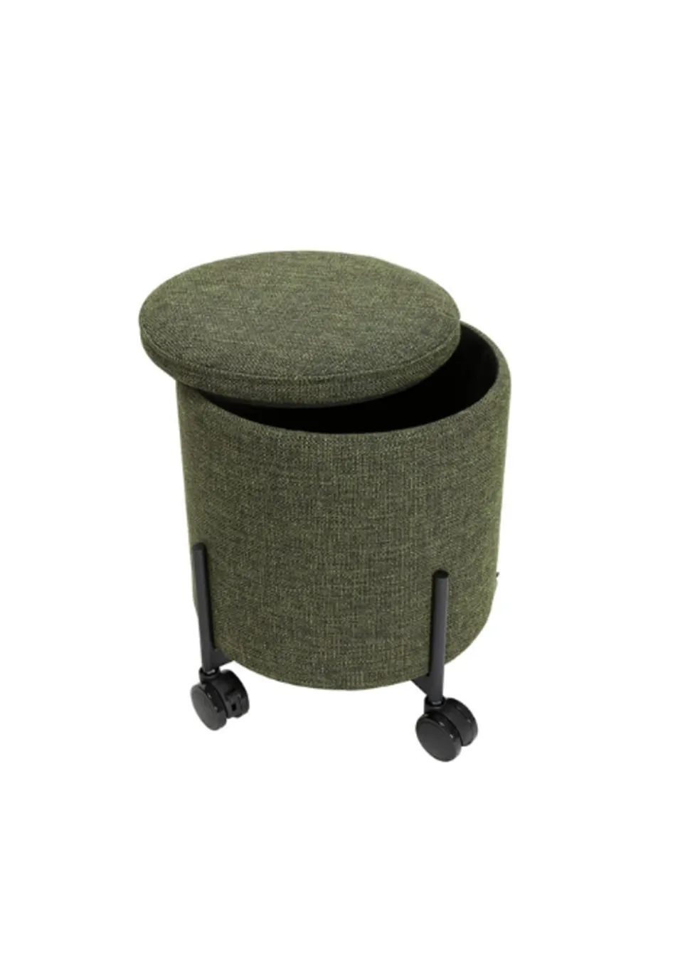 Contain Pouf ist ein stilvoller Pouf, der mit seinen schönen Rädern schnell zu einem einzigartigen mobilen Pouf wird. Der Hocker bietet Platz für die Aufbewahrung von Decken, Spielen usw. Der Hocker ist in zwei verschiedenen Größen erhältlich, beide bestehen aus 10% Acryl und 90% Polyester. Alternativ kann der Pouffe auch als kleiner Beistelltisch verwendet werden. Der Hocker hat eine schöne grüne Farbe und verleiht Ihrer Einrichtung eine einzigartige Note.