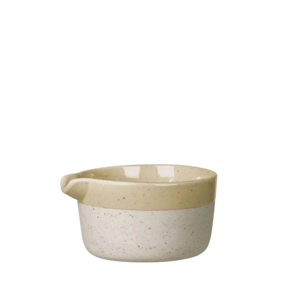 Das schöne handgefertigte Sablo Milchkännchen wurde von Frederike Martens entworfen. Der Krug ist aus einer Mischung aus farbigem Ton, Quarz, Mineralien und Oxiden hergestellt. Die Farbkombination aus Grau- und Beigetönen ergänzt perfekt das Aussehen des leicht gebeizten Looks. Der leicht gebeizte Look wird durch die partielle Glasur noch verstärkt, die dem Krug ein schönes Aussehen verleiht. Die Sablo Milchkanne ist spülmaschinen- und mikrowellenfest.