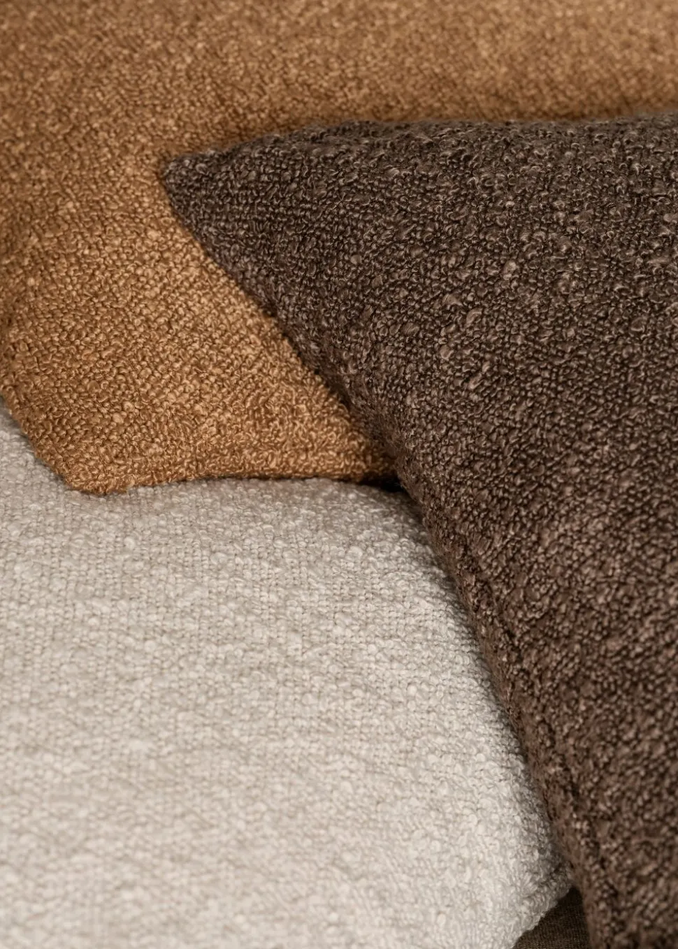 Der Boucle-Kissenbezug wurde von entworfen und besteht aus einer gewebten Struktur mit einem einzigartigen Knotenmuster. Der Bezug ist weich, gemütlich und verleiht Ihrem Zuhause Eleganz. Er ist von höchster Qualität, was die Stoffe und YKK-Reißverschlüsse betrifft.