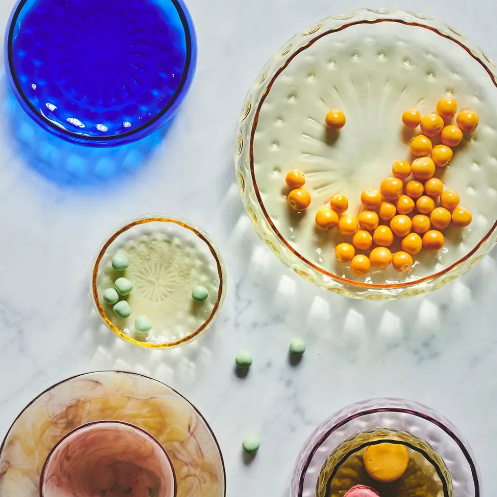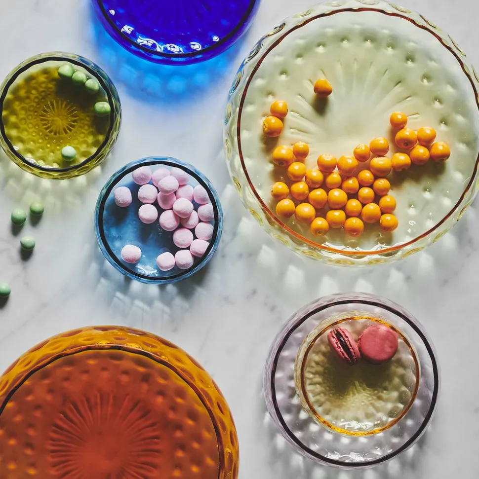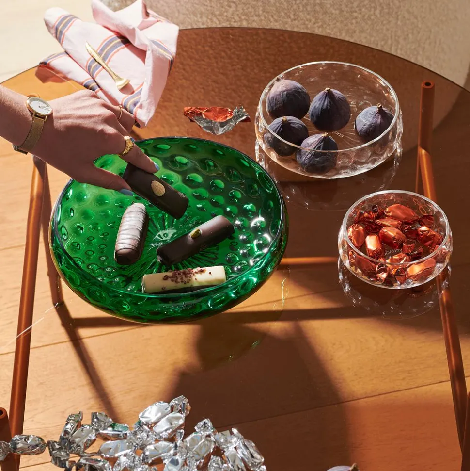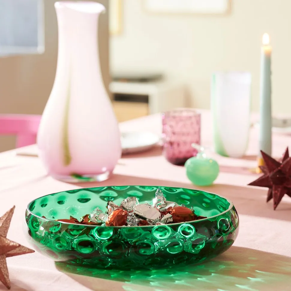 Schöne Schalen, die vom verregneten dänischen Sommer inspiriert wurden. Dies zeigt sich in der Struktur der Schale, die so gestaltet ist, dass es aussieht, als seien viele Regentropfen auf der Schale. Die Schale wird aus hochwertigem Glas aus Böhmen in der Tschechischen Republik mundgeblasen. Verwenden Sie diese Schalen das ganze Jahr über. Sowohl zur Dekoration als auch, wenn Sie Gäste haben, wären sie perfekt, um etwas darin zu servieren. Im Alltag wäre es naheliegend, einige frische Früchte in der schönen Schale liegen zu haben. HINWEIS: Alle Schalen sind mundgeblasen, was bedeutet, dass es leichte Abweichungen in Farbe und Form gibt, die Sie aber nicht bemerken werden. Diese schönen Schalen sind Teil der Serie Danish Summer, in der es sowohl Gläser, Schalen und Karaffen mit dem gleichen Design wie der regnerische dänische Sommer gibt.