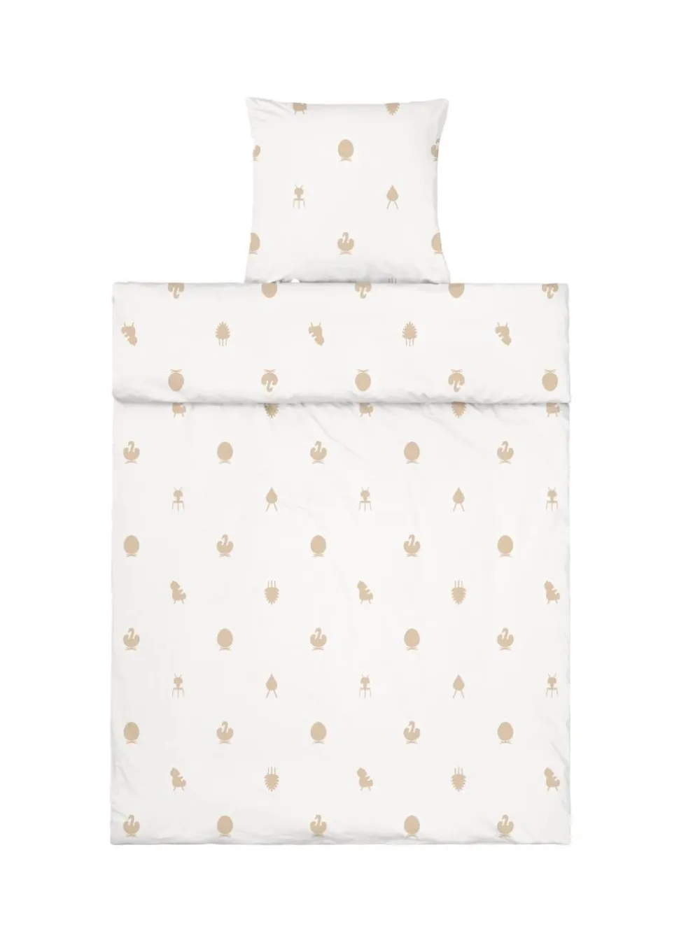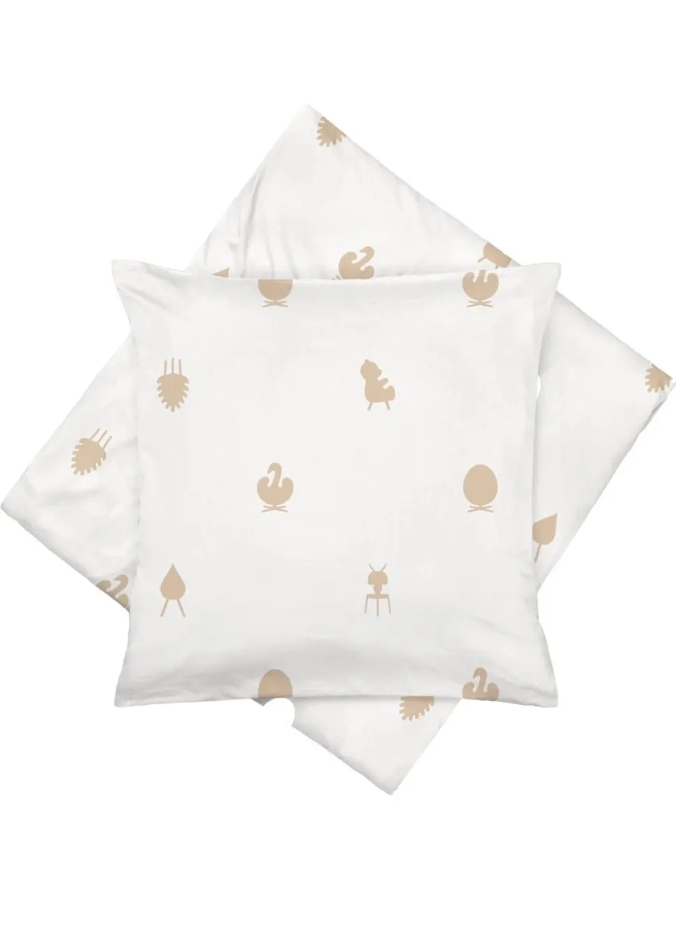 Die Bettwäsche ist satiniert und aus 100 % Baumwolle gewebt, was ihr einen weichen und exklusiven Charakter verleiht. Die Bettwäsche ist mit Design Icons dekoriert, die wörtliche Interpretationen dänischer Möbelklassiker in einer ikonischen Version sind. Dazu gehören Interpretationen des Eies, des Kegels, des Schwans, des Tropfens, des Teddybären und der Ameise.