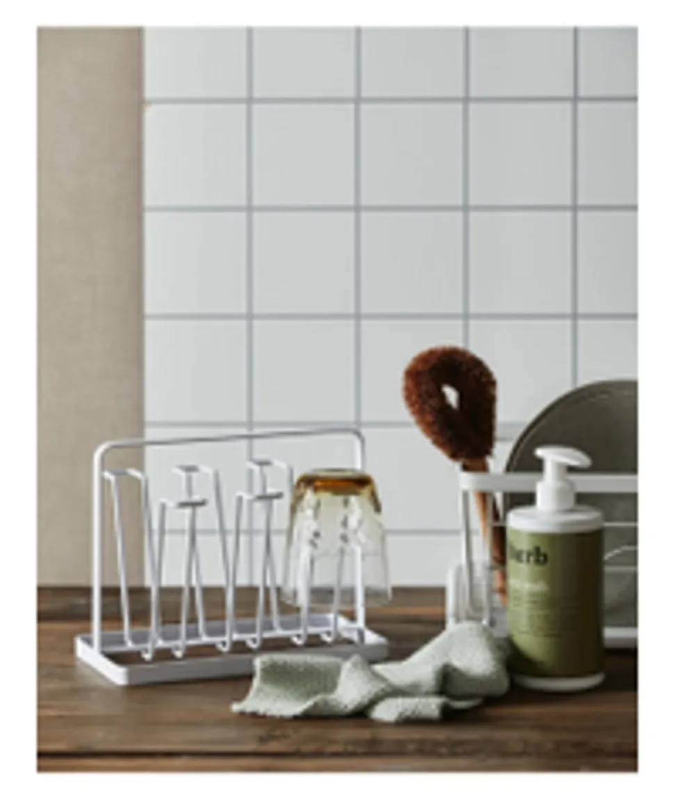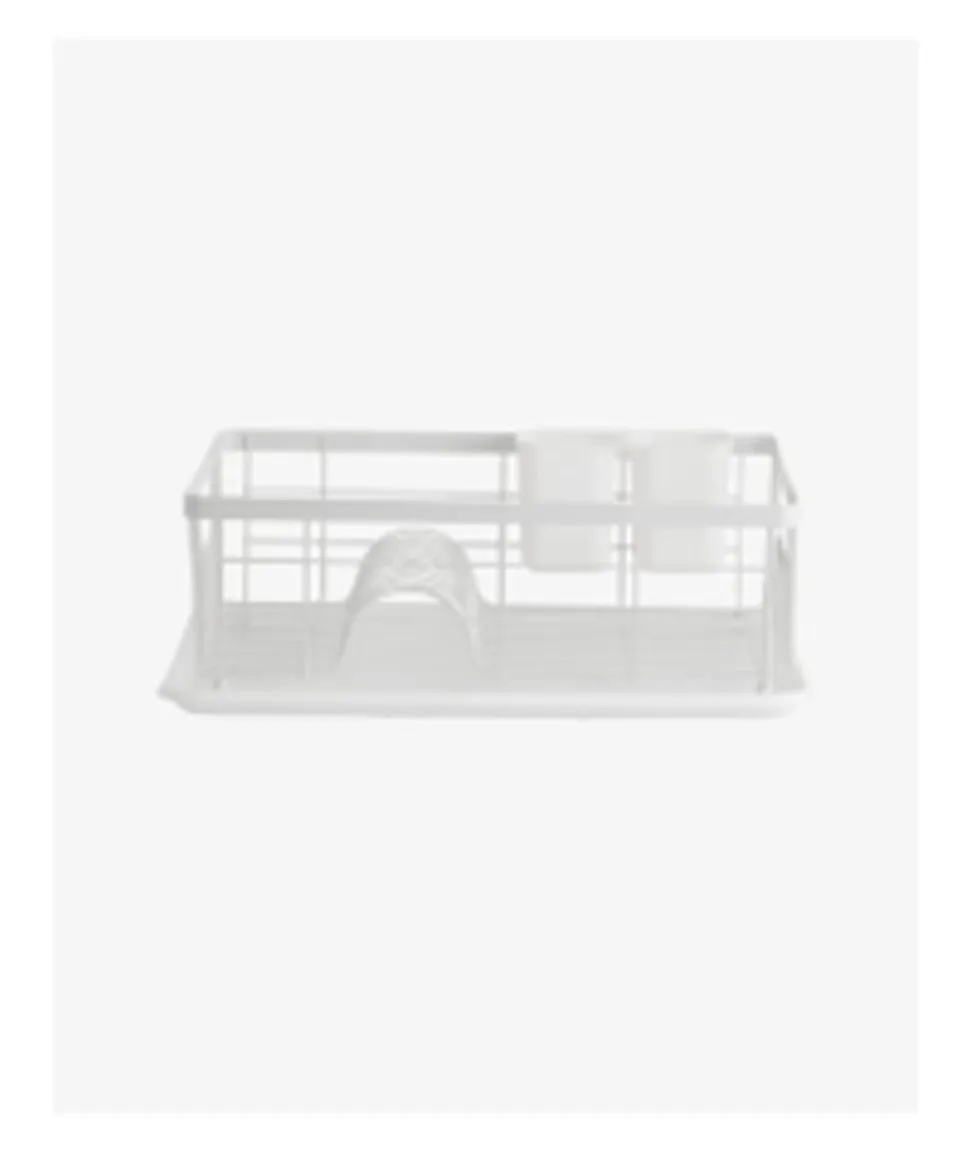 Praktischer Geschirrständer von . Das Gestell ist mit einer Kunststoffschale zum Auffangen von Wasser ausgestattet. Der Geschirrkorb bietet Platz für Tassen, Teller und Besteck. Es ist ideal für den Handabwasch. Die Kunststoffschale sorgt dafür, dass weder die Arbeitsplatte noch andere Gegenstände feucht werden und verderben.