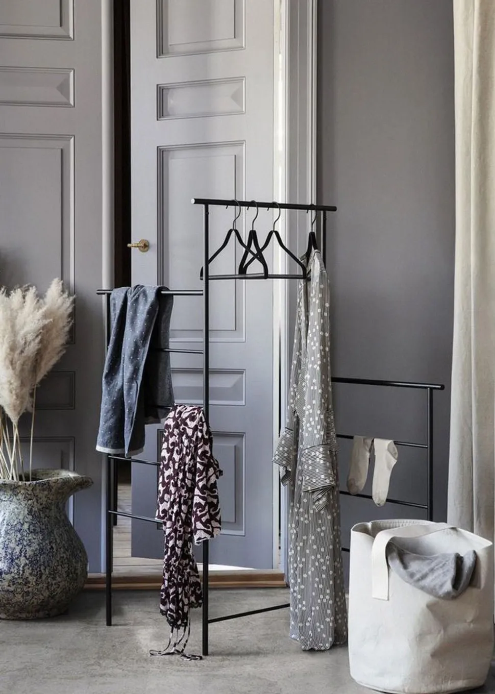 Eine minimalistische und multifunktionale Lösung für den Kleiderschrank ist etwas, das wir alle brauchen. Der Kleiderständer Dora von ist die perfekte Lösung. Der Kleiderständer besteht aus drei Paneelen aus stilvollem, pulverbeschichtetem Metall mit einem Hauch von japanischer Ästhetik. Verwenden Sie den Kleiderständer als stilvollen klappbaren Wäscheständer oder nutzen Sie ihn als Raumteiler, um Ihre Lieblingskleidung zu präsentieren und gleichzeitig ein schönes Raumgefühl in größeren Räumen zu schaffen. Wie bereits erwähnt, lässt sich das Gestell zusammenklappen, so dass es bei der Aufbewahrung oder beim Verstauen nicht viel Platz einnimmt.