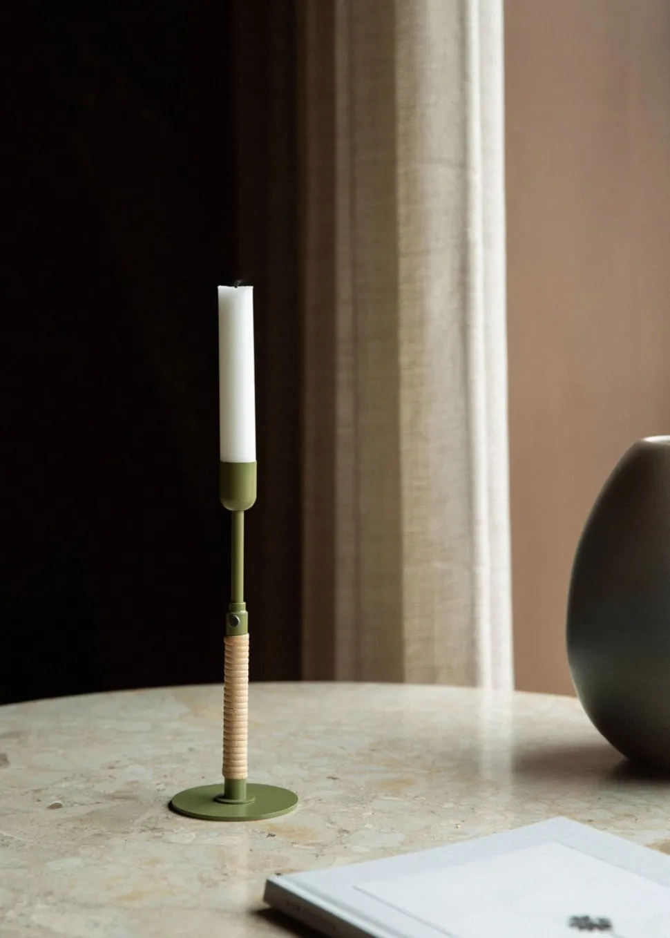 In einer ästhetischen Mischung aus femininem Messing und rustikalem Rattan ist die Duca-Bühne von Krøyer Sætter Lassen ein wunderschönes skulpturales Einrichtungsstück. Der lateinische Name „Duca“ bedeutet „ausdehnen“. Die kleine Schraube an der Oberseite ermöglicht es, den Ständer auf verschiedene Höhen auszudehnen, wodurch er universell einsetzbar ist. Die Stange kann in einer Gruppe mit verschiedenen Höhen und Ausführungen arrangiert werden oder allein stehen, wo sie ebenfalls die Aufmerksamkeit auf sich zieht.