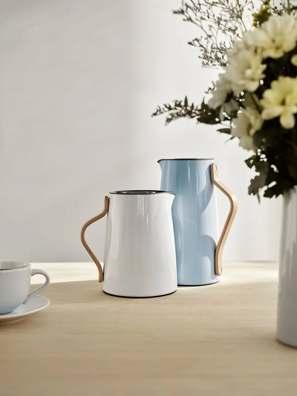 Emma Thermoskanne von Entworfen von dem dänischen Designerduo HolmbäckNordenttoft, das sich an der dänischen Designschule kennengelernt hat, an der beide ihren Abschluss gemacht haben, und das nun ein gemeinsames Designstudio betreibt. Die Thermoskanne ist eine Kombination aus stilvollem Design und praktischer Möglichkeit, Kaffee oder andere Heißgetränke auf Kaffeetellern zu Hause zu servieren. Zusammen mit einer schönen und praktischen Thermoskanne gibt es eine Auswahl an Farben, so dass Sie genau diejenige bekommen, die zu Ihrem Stil oder Ihrem Geschirr passt.