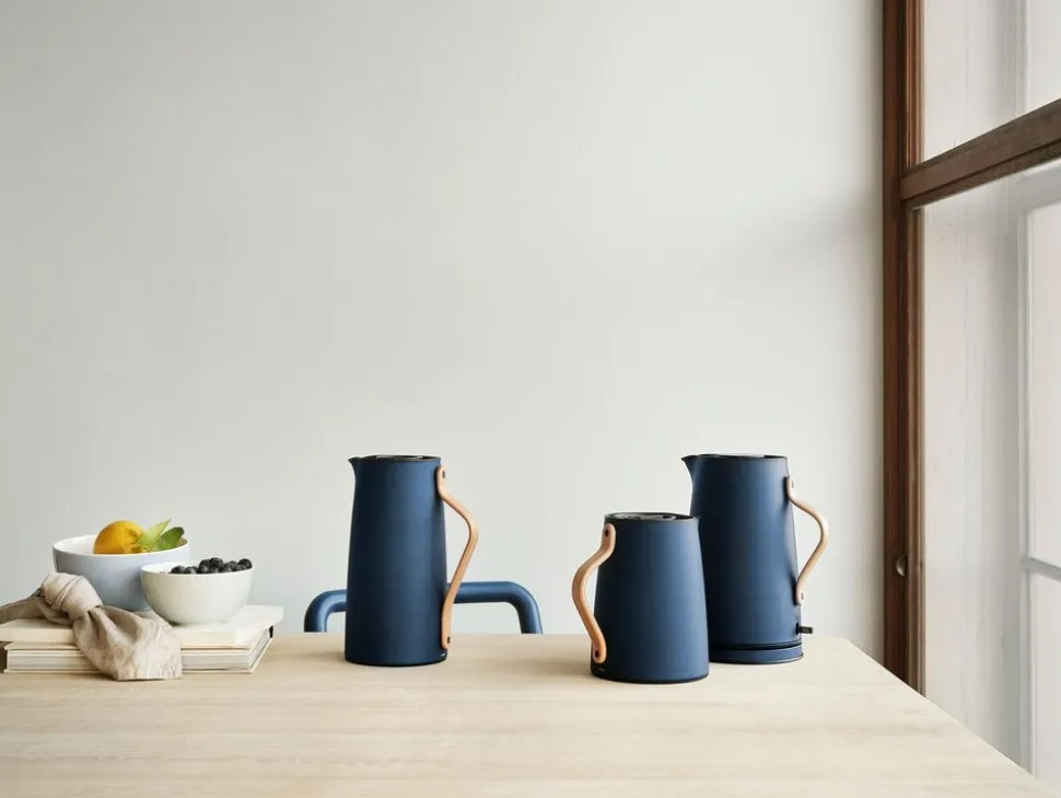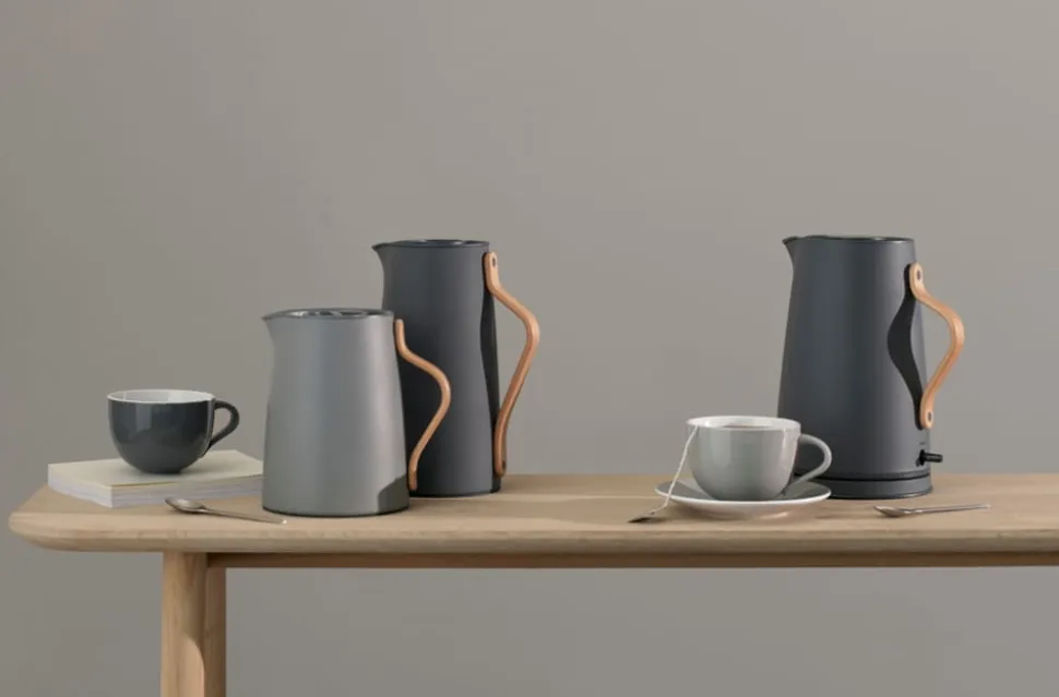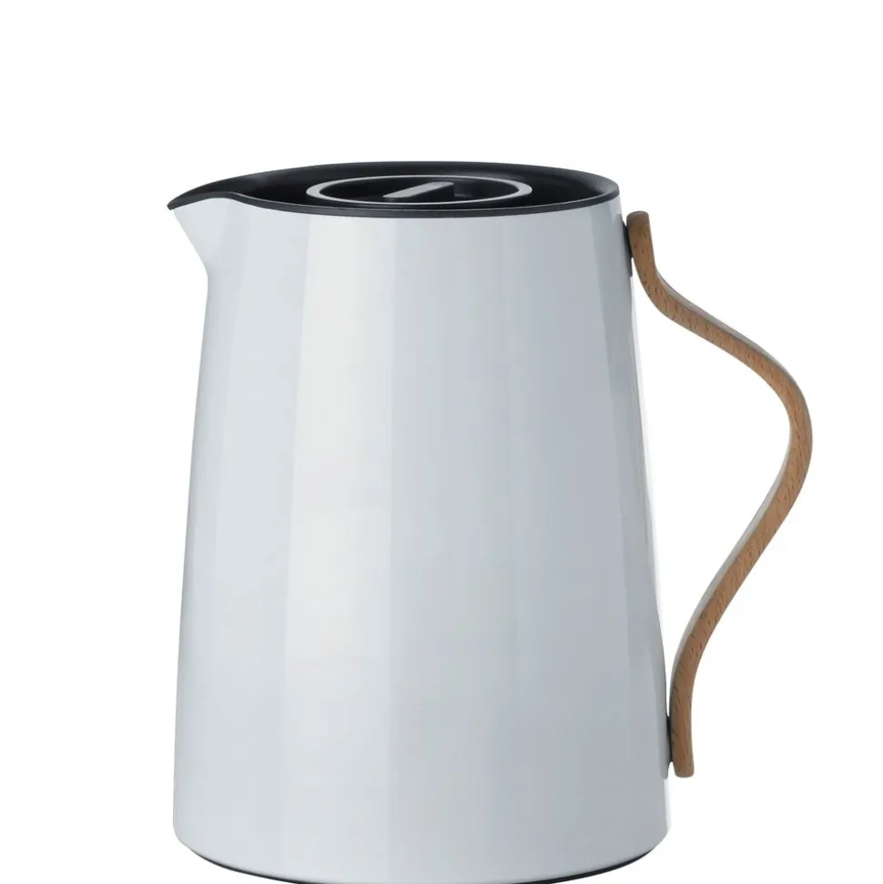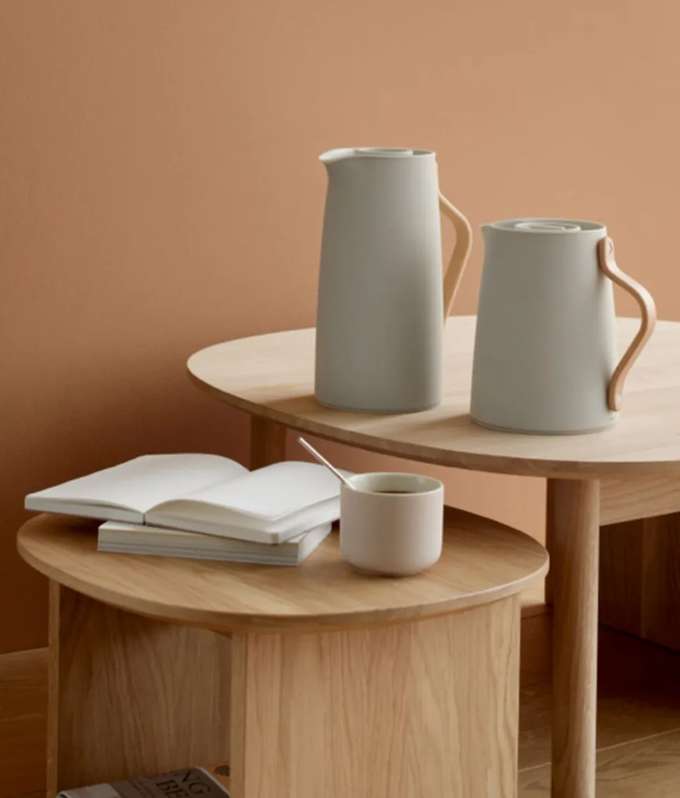 Emma Thermoskanne von Entworfen von dem dänischen Designerduo HolmbäckNordenttoft, das sich an der dänischen Designschule kennengelernt hat, an der beide ihren Abschluss gemacht haben, und das nun ein gemeinsames Designstudio betreibt. Die Thermoskanne ist eine Kombination aus stilvollem Design und praktischer Möglichkeit, Tee oder andere Heißgetränke auf Kaffeetellern im Haus zu servieren. Zusammen mit einer schönen und praktischen Thermoskanne gibt es eine Auswahl an Farben, so dass Sie genau diejenige bekommen, die zu Ihrem Stil oder Geschirr passt.
