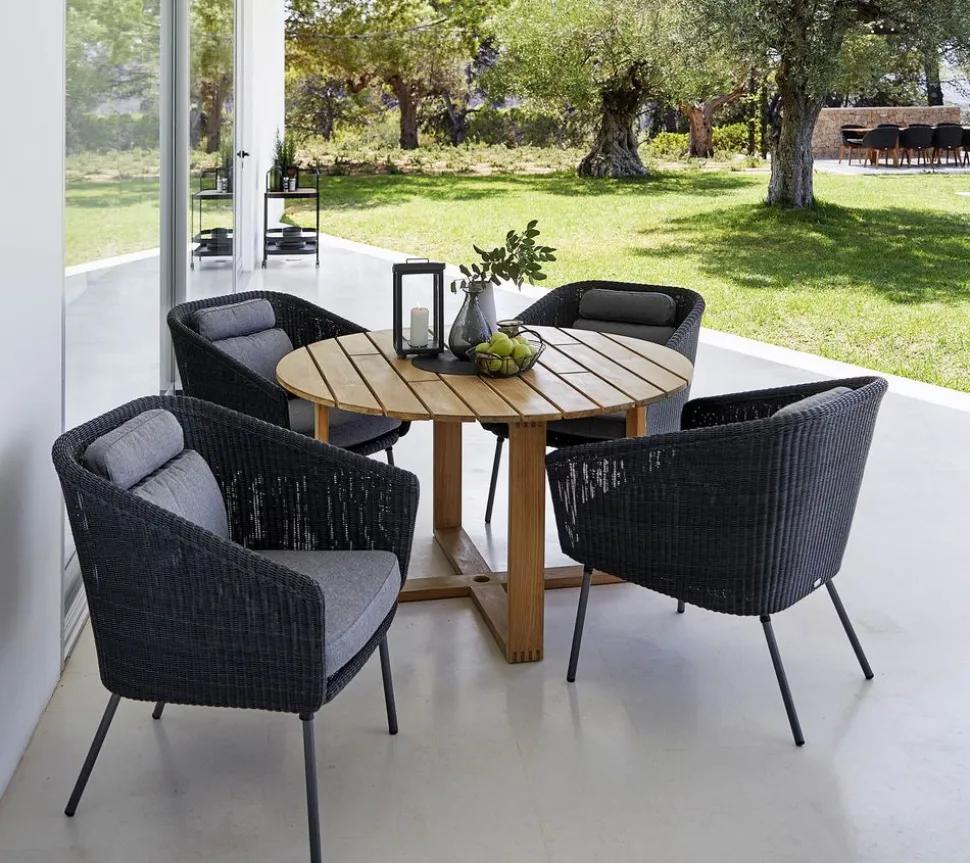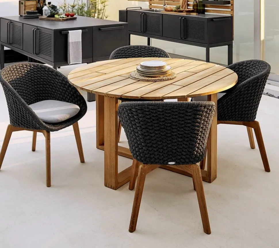 Teak ist ein ölhaltiges Holz, das perfekt für den Außenbereich geeignet ist. Das Holz erhält mit der Zeit eine natürliche silbergraue Patina. Durch die Verwendung von Teaköl kann der Tisch jedoch seinen natürlichen Glanz beibehalten. Teakholz ist gemäß SVLK-Zertifizierung geprüft und gewachsen