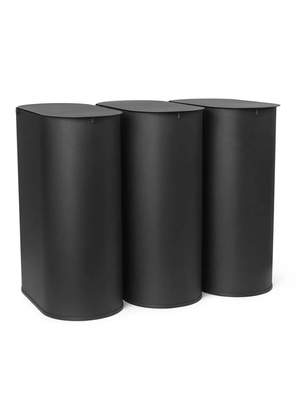 Enkel Bin von ist eine Abfall- und Aufbewahrungslösung, die einfach und funktional zugleich ist. Er ist ideal, um den täglichen Hausmüll zu sortieren und gleichzeitig die Wäsche zu sortieren. Der Simple Bin ist aus pulverbeschichtetem Kohlenstoffstahl gefertigt und hat eine elegante ovale Form. Er hat einen herausnehmbaren Inneneimer aus recyceltem Kunststoff mit einem praktischen Metallgriff, der das Entleeren und Reinigen erleichtert. Sie können den Single Bin allein verwenden oder zwei oder mehr in eine Reihe stellen, um Ihr eigenes praktisches Sortiersystem zu Hause zu schaffen.