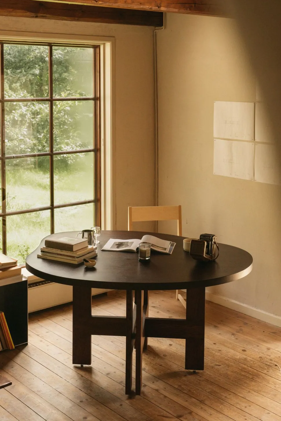 , bekannt für sein Engagement für Qualität und zeitloses Design, hat mit dieser Kreation einmal mehr seine Kompetenz unter Beweis gestellt. Die Hingabe des FRAMA-Studios, traditionelle und zeitgenössische Ästhetik zu vereinen, ist offensichtlich und macht diesen Tisch zu einer wirklich außergewöhnlichen Ergänzung für jedes Zuhause.