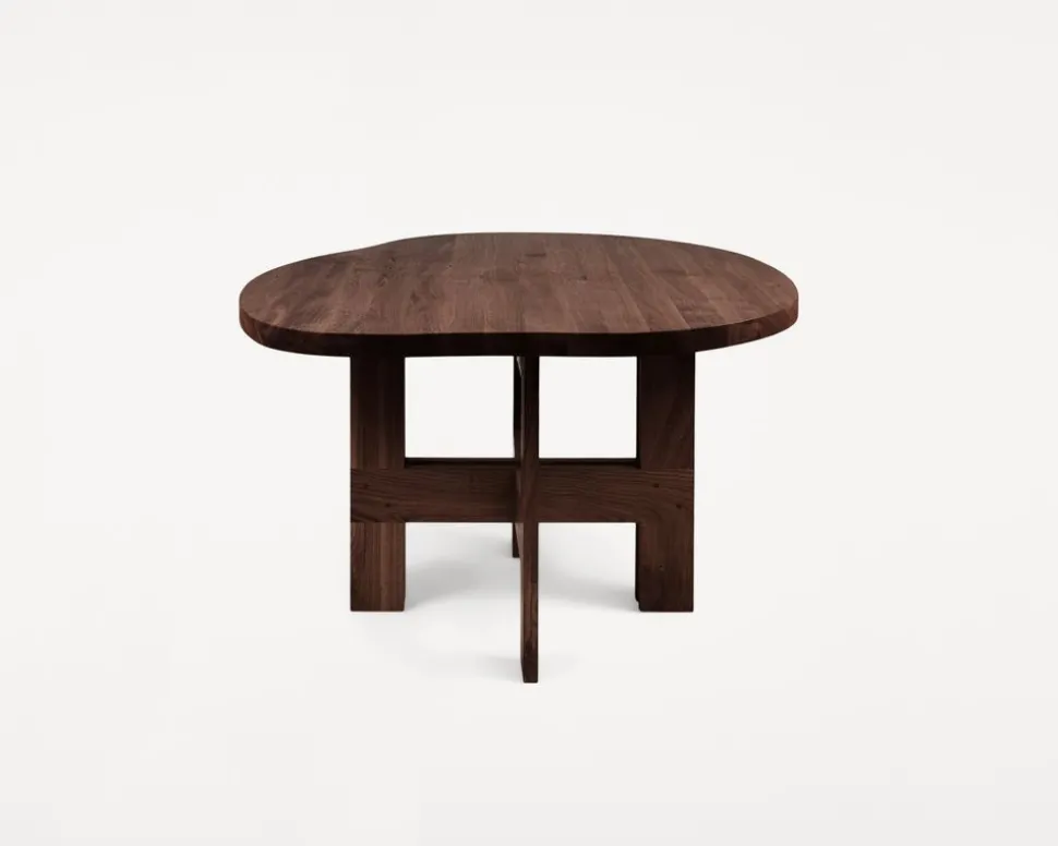 Der Farmhouse Trestle Table Pond von , entworfen von Studio im Jahr 2023, ist ein beeindruckendes Stück Handwerkskunst. Dieser Esstisch zeichnet sich durch sein einzigartig skulpturales und organisches Design in Form eines Teiches aus, der in reicher dunkler Eiche ausgeführt ist. Seine schlichte Ästhetik wird durch die hochwertige Konstruktion aus massiver Eiche ergänzt, die von stabilen Böcken getragen wird. Inspiriert von traditionellen Bauernhäusern, bringt dieser Tisch einen Hauch von ländlichem Charme in jedes Haus und dient gleichzeitig als eleganter Blickpunkt in Wohnräumen, Küchen oder Esszimmern.
