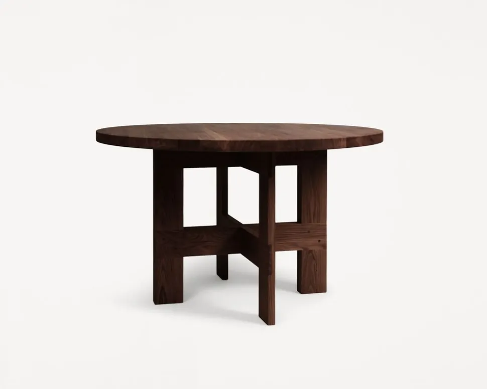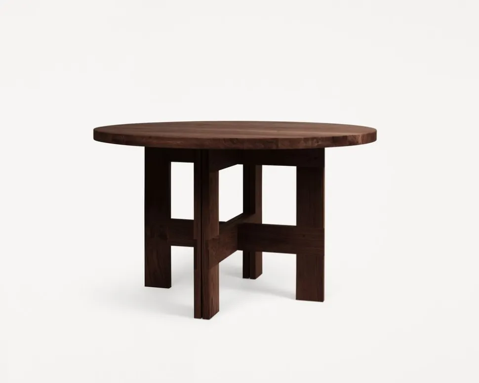 Der Farmhouse Trestle Table Round von , entworfen von Studio im Jahr 2023, verkörpert mit seiner dunklen Eichenoberfläche und seiner robusten Konstruktion rustikale Eleganz. Der Tisch ist aus hochwertigem, massivem Eichenholz gefertigt und weist einen satten, tiefen Ton auf, der Wärme und Raffinesse ausstrahlt. Er wird von traditionellen Böcken getragen, die von klassischen Bauernhäusern inspiriert sind, und bringt einen Hauch von ländlichem Charme in Ihr Zuhause. Dieser exquisite Esstisch ist ein Blickfang in jedem Wohnbereich, jeder Küche und jedem Esszimmer und bietet sowohl Schönheit als auch Funktionalität.