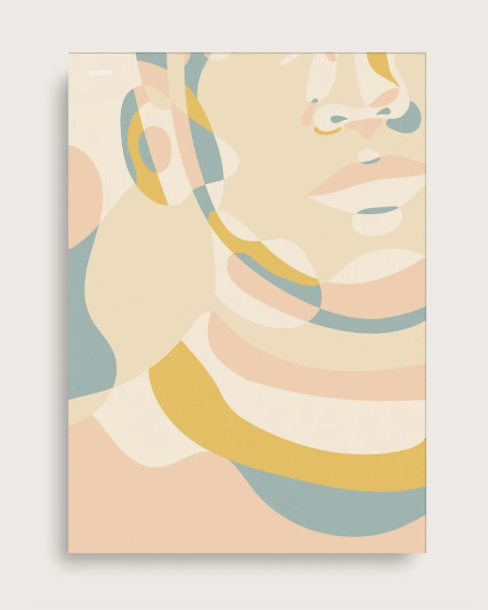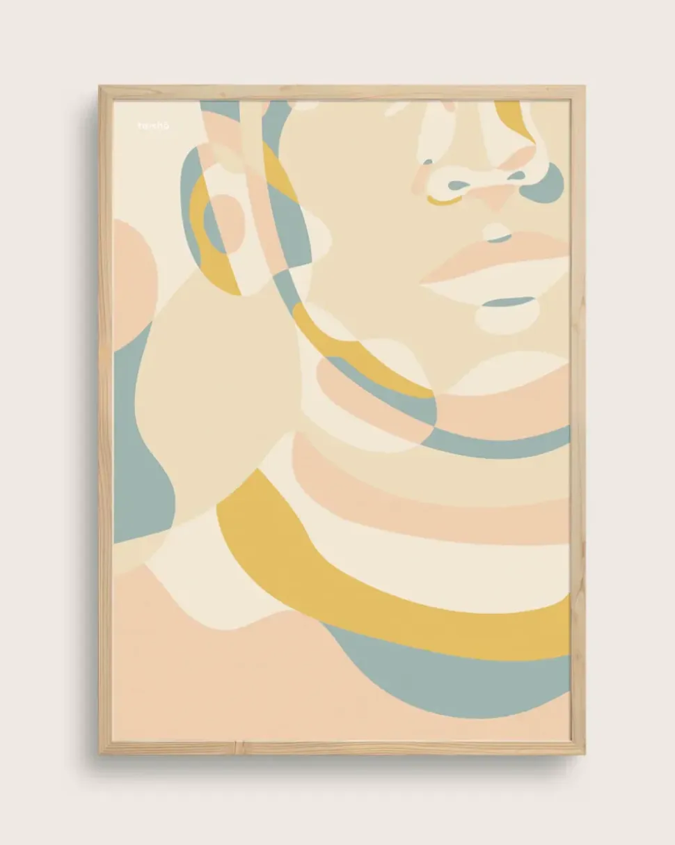 Die schöne Landschaft ist auch die Inspiration für das „Fifty Fifty“-Poster von . Die farbenfrohen „Wohnungen“ bilden ein schönes weibliches Gesicht mit einem intensiven Ausdruck. „Fifty Fifty“ bringt auf leichte und elegante Weise Farbe in die Wohnung.