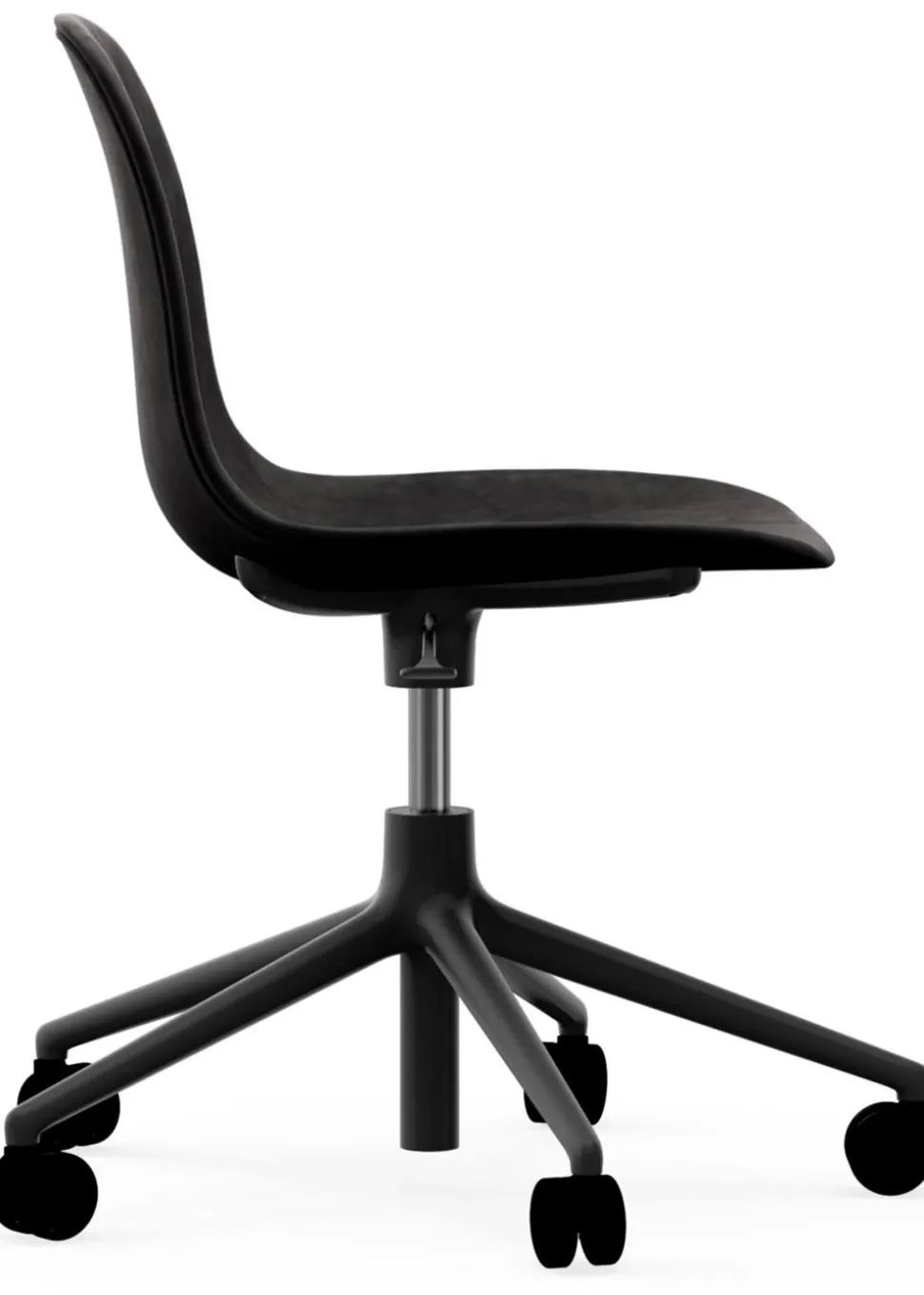 Das drehbare Gestell aus Aluminium in Schwarz, Weiß oder poliert verleiht dem Form-Stuhl ein exklusives Aussehen und eine komfortable Bewegungsfreiheit. Dies macht den Stuhl zur ersten Wahl u.a. für Restaurants und Konferenzräume. Der Drehrahmen ist mit 4 oder 5 Beinen erhältlich, die ohne bzw. mit Rädern geliefert werden.