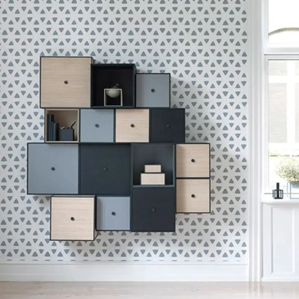 Frame ist eine flexible Aufbewahrungslösung für quadratische Kartons in kubischen Rahmen. Der Rahmen kann direkt an die Wand gehängt, gestapelt oder frei auf dem Boden stehen. Der Deckel kann komplett abgenommen oder als Tür montiert werden. Kombinieren Sie den Rahmen für ein klassisches Bücherregal, eine einzigartige Skulptur oder etwas ganz Drittes. Die Möglichkeiten sind endlos und Sie können so Ihr ganz persönliches Design und Ihren ganz persönlichen Ausdruck kreieren.