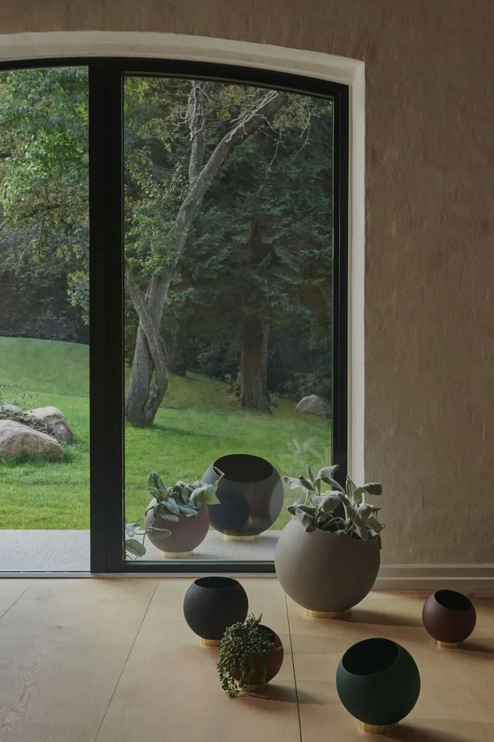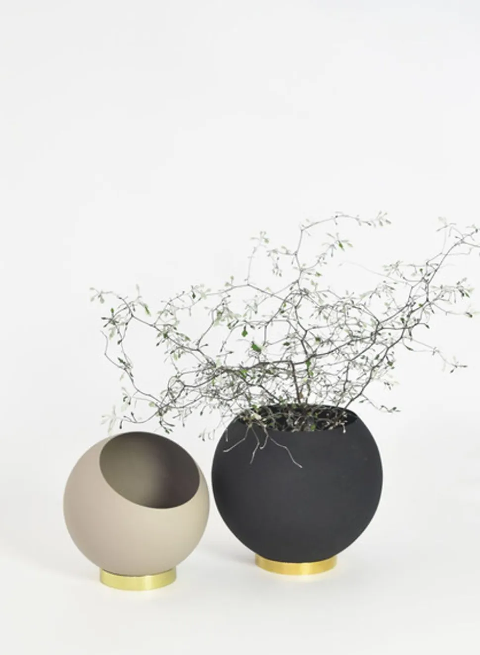 Der Globe Blumentopf von ist der perfekte Blumentopf, um Ihre Einrichtung aufzuwerten. Dieses sorgfältig gefertigte und meisterhaft gestaltete Kultobjekt verbindet mühelos Funktionalität mit künstlerischem Ausdruck. Die glänzenden Messingringe harmonieren perfekt mit den tiefen, matten Oberflächen und strahlen eine Aura von Raffinesse und Verspieltheit aus. Ob im Innen- oder Außenbereich, die einzigartige Kombination aus leuchtenden Farben schafft eine bezaubernde visuelle Symphonie.