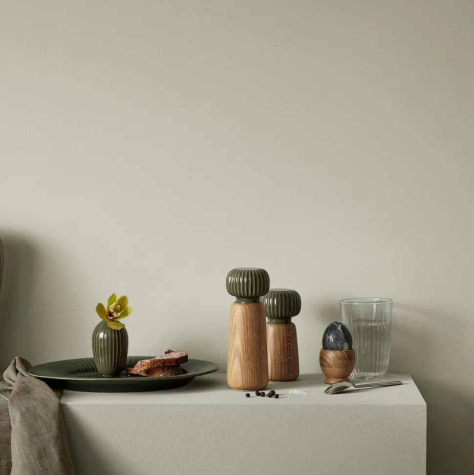 Dieses feine Mahlwerk kann für Salz und Pfeffer oder andere Gewürze verwendet werden. Die Mühle aus der Hammershøi-Serie von ist eine elegante Mischung aus natürlichen und langlebigen Materialien. Die Mühle selbst ist aus Eichenholz, der Deckel aus Keramik. Die Mühle hat einen harmonischen Ausdruck mit einer eleganten Interpretation der nordischen Natur.