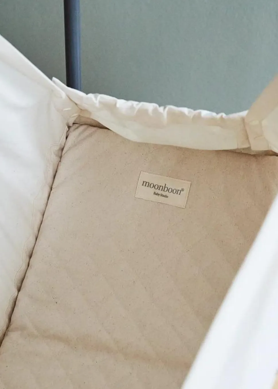 Die Versteifung besteht aus Bettdeckenstoff, Bio-Baumwolle und einer hypoallergenen Kokosfaserfüllung und ist die perfekte Ergänzung für das Kinderbett.