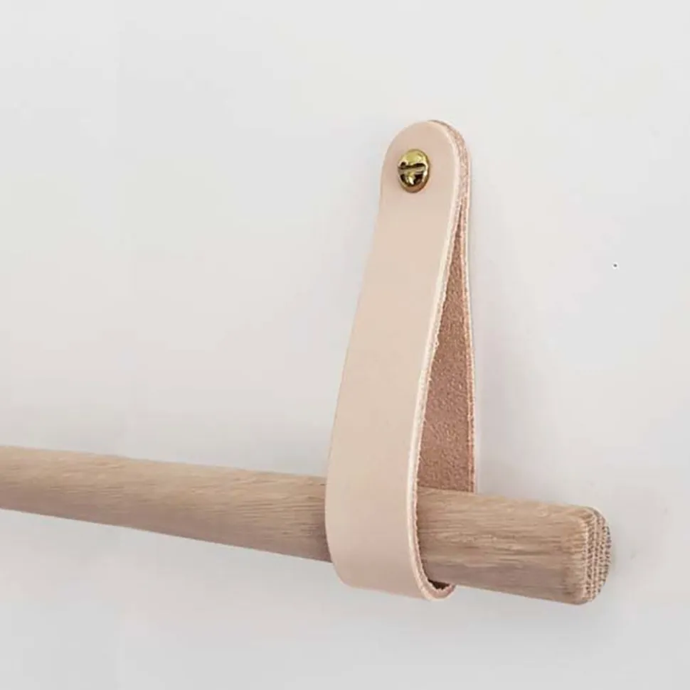 HangOn sind Lederriemen von . Die Lederriemen geben Ihnen die Möglichkeit, Ihre ganz eigene Aufhängelösung in einem stilvollen und einfachen nordischen Design zu kreieren. Die Lederqualität ist dick und roh mit abgerundeten Kanten.