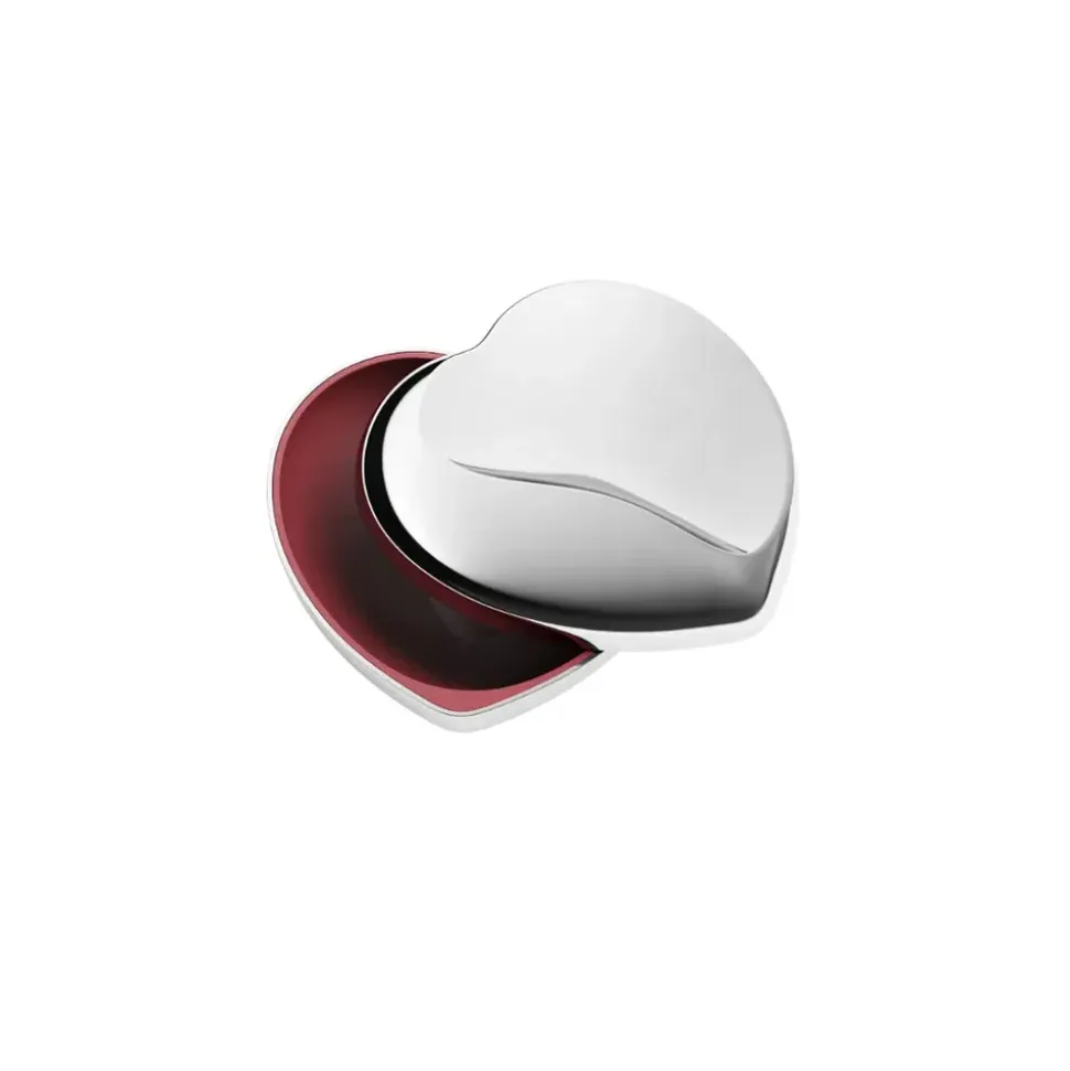 Heart Pill Box fra fremstår som en smuk hyldest til kærlighedens bånd, skabt i et elegant design med sans for detaljen. Æsken, designet i håndpoleret rustfrit stål med en sart rosafarvet inderside, byder på en raffineret form med to sammenflettede hjertehalvdele. Den magnetiske lukning og en raffineret 360-graders åbnemekanisme forener æstetik og funktionalitet i et sublimt lille objekt.