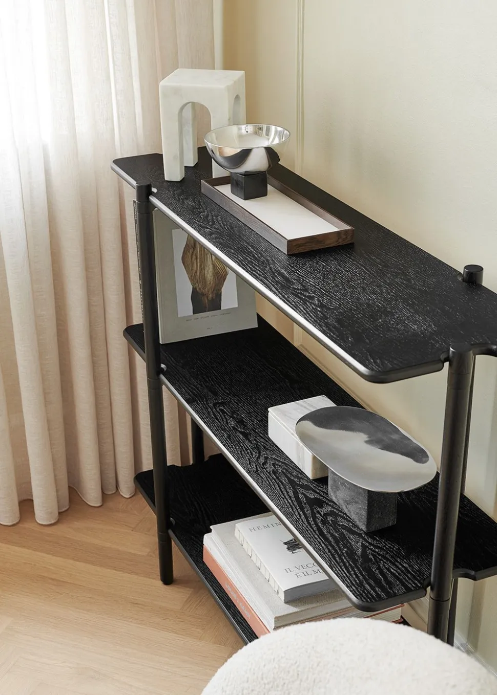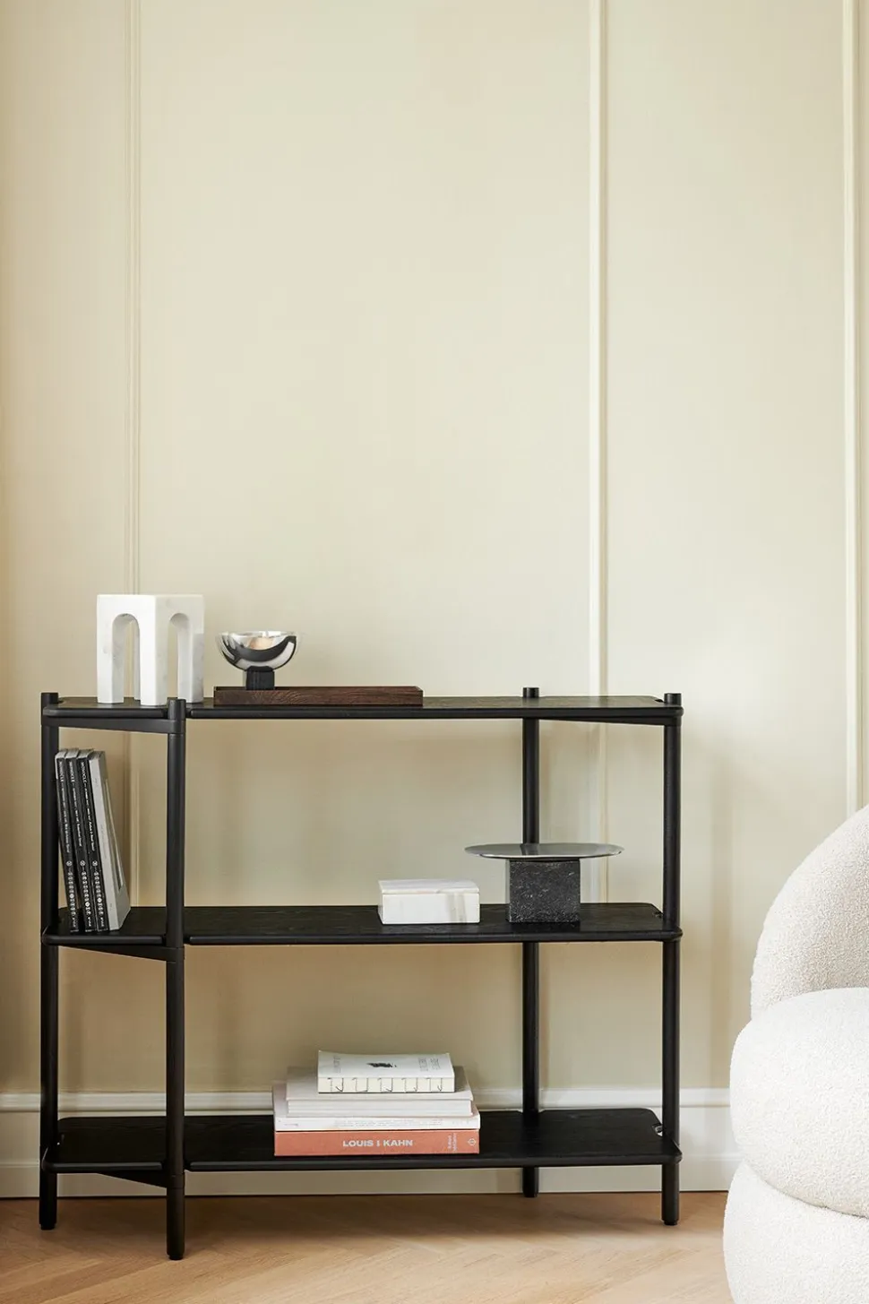 Mit seinem modularen Design passt sich Invi mühelos an verschiedene Umgebungen und Räume an und bietet grenzenlose Möglichkeiten. Dieses Regalsystem besteht aus zwei Modulen, wobei Modul 1 als solides Fundament auf dem Boden dient, während Modul 2 eine vertikale Erweiterung ermöglicht. Ob es das Wohnzimmer als beeindruckendes Bücherregal schmückt, Gäste als Konsolentisch im Flur empfängt oder einen stilvollen Raumteiler in einem offenen Design bildet, Invi verleiht einen Hauch von nordischer Eleganz, die die Designsprache von definiert. Mit viel Liebe zum Detail und unter Verwendung hochwertiger Materialien gefertigt, ist dieses einzigartige Möbelstück ein Beweis für das Engagement der Marke für Exzellenz.