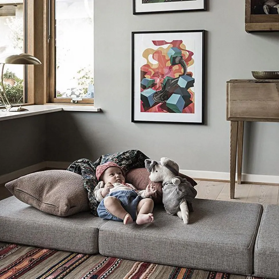 Die schönste Purzel- und Spielmatratze, Stuhl, Pouf oder Gästebett von . KK 3 single ist eine dreischichtige Matratze, die auf viele kreative Arten verwendet werden kann. Sie ist perfekt für kleine Babys, um eine schöne Liegefläche zu bilden, und für die größeren Babys ist sie gut als Motivation zum Krabbeln, z.B. indem man sie zu kleinen Stufen faltet. Die größeren Kinder werden es als Platz für Brötchen und andere Purzelbäume lieben. KK 3 single kann auch im Zimmer als Stuhl, Gästebett, Essplatz etc. verwendet werden. Ein sehr funktionelles Möbel mit schönem Design, das alle Familien besitzen sollten.