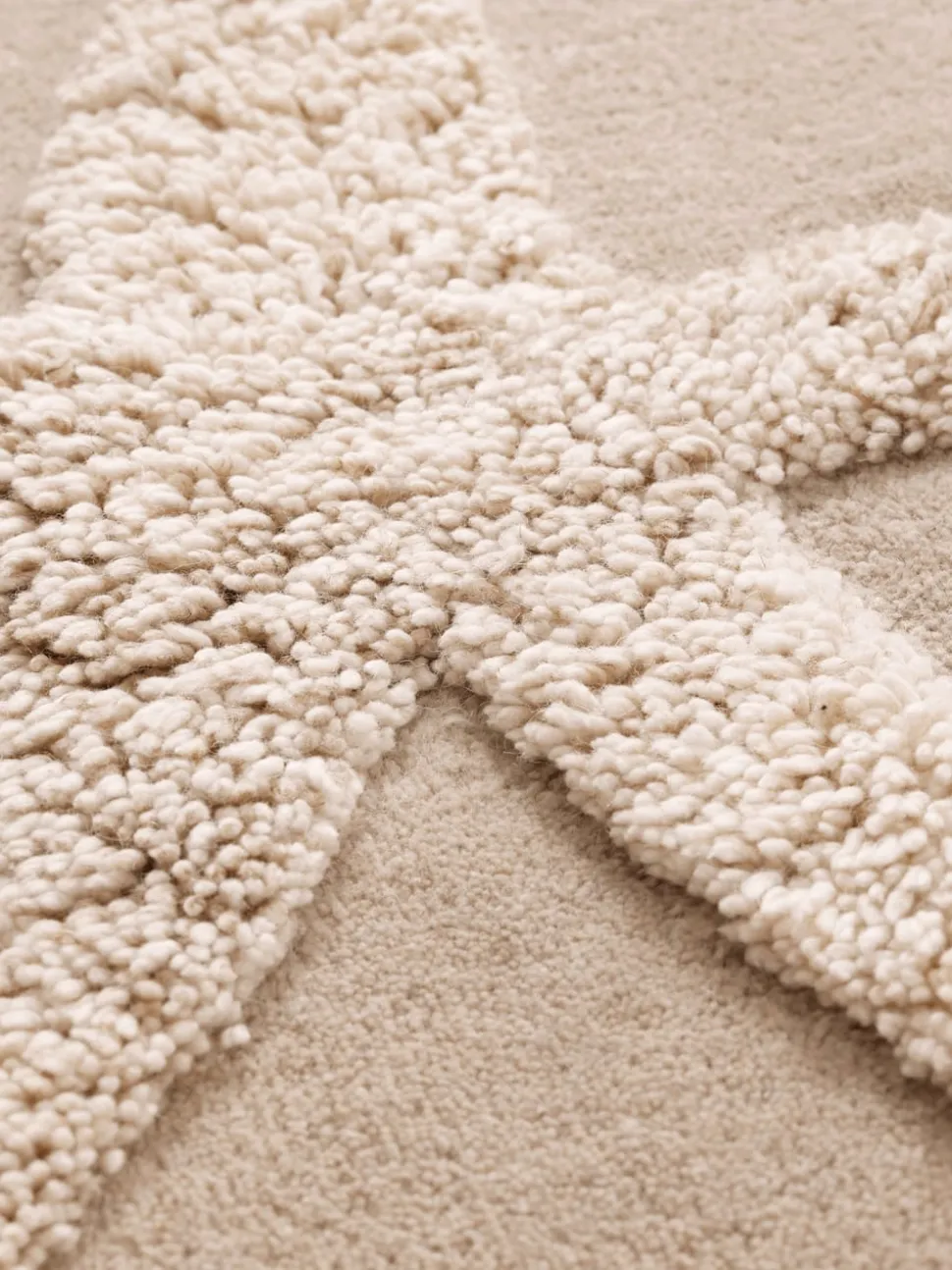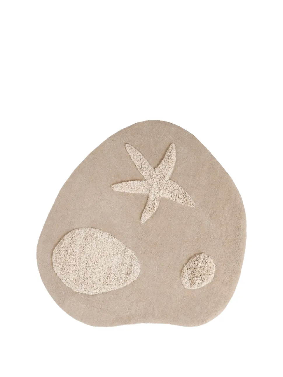Der Kove Tuftingteppich von verbindet Verspieltheit und Ästhetik mit der Inspiration der mediterranen Küstenlinie. Handgetuftet aus 100 % neuseeländischer Wolle mit einer außergewöhnlich weichen und plüschigen Textur, schafft der Teppich ein sinnliches Erlebnis für kleine Füße. Das asymmetrische Design zeigt ein bezauberndes Felsenpool-Motiv, mit erhabenen getufteten Elementen wie Seesternen und Wasserbecken, die Tiefe und abenteuerliche Details hinzufügen.