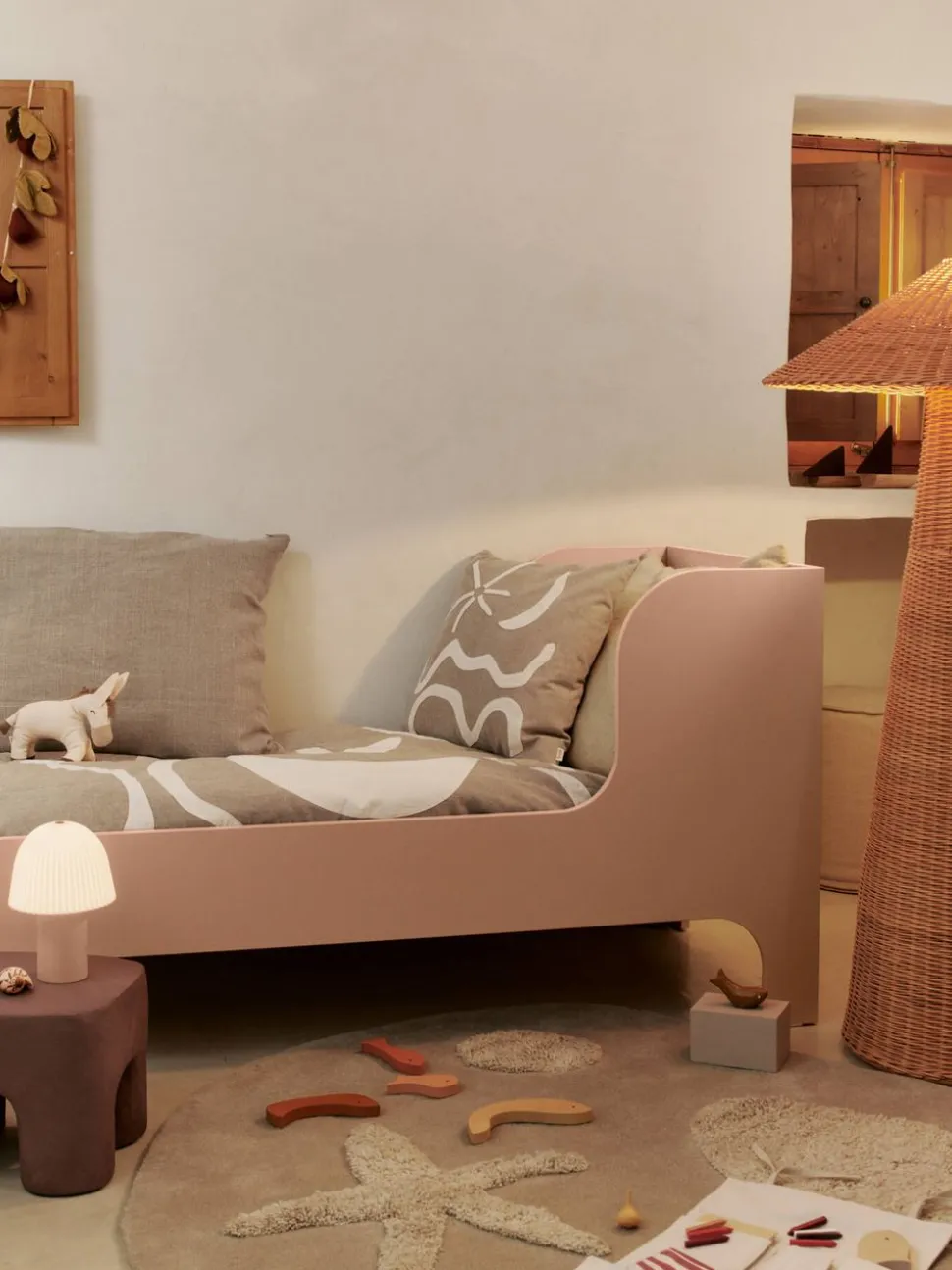 Perfekt, um eine gemütliche Atmosphäre im Kinderzimmer zu schaffen – entweder als weiche Oberfläche zum Spielen oder als dekoratives Element, das die Ruhe der Natur in den Raum bringt. Kombinieren Sie sie mit Textilien in erdigen Farben und organischen Formen, um eine harmonische und inspirierende Spielwelt zu schaffen.