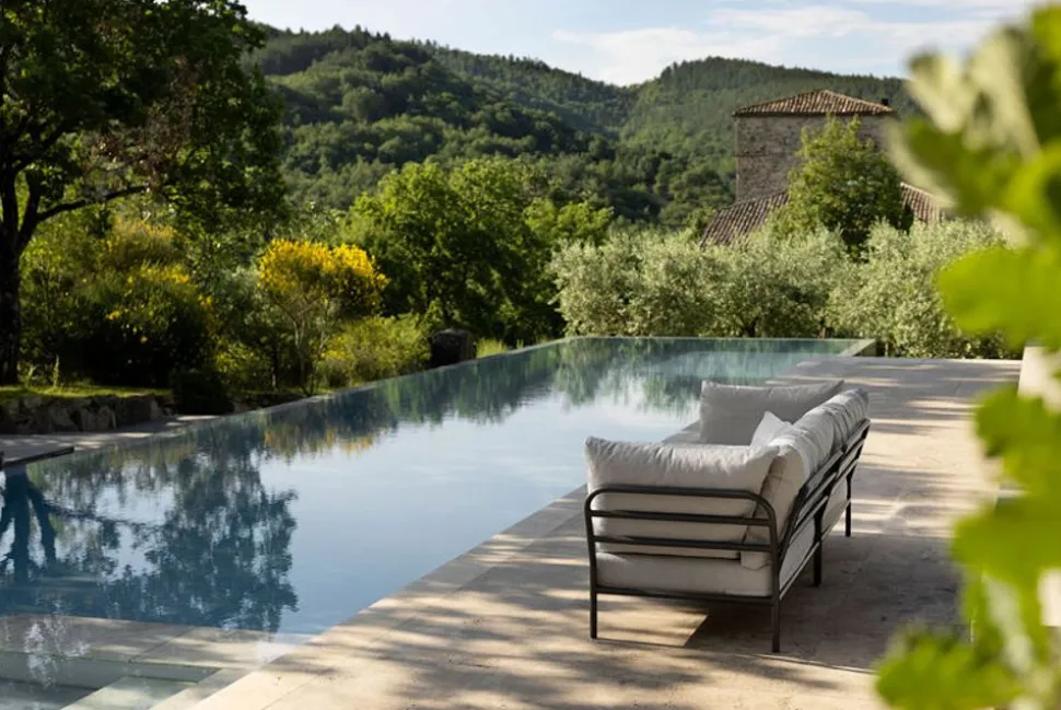 Das modulare Design der LEVEL-Serie eröffnet unzählige Kombinationsmöglichkeiten, die es ermöglichen, einen individuellen und einladenden Außenbereich zu schaffen. Das LEVEL 2 Right Corner lässt sich problemlos mit anderen Modulen wie einem linken Sofa, einem Loungesessel, einer Ottomane, einem Couchtisch und einem Beistelltisch zu einer zusammenhängenden und multifunktionalen Lounge-Gruppe kombinieren. Der einzigartige Sunbrella Heritage-Stoff mit sichtbaren, farbigen Fasern aus dem Recyclingprozess verleiht jedem Kissen einen authentischen Vintage-Touch, der es einzigartig macht.
