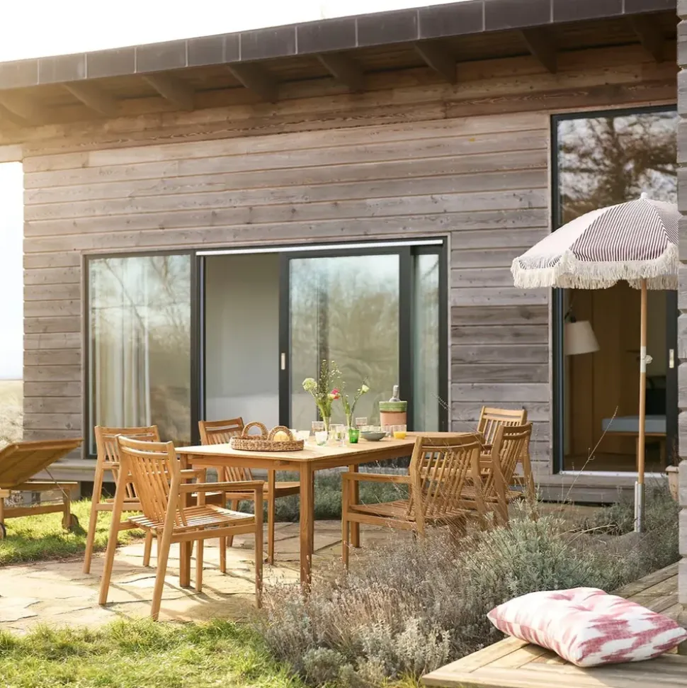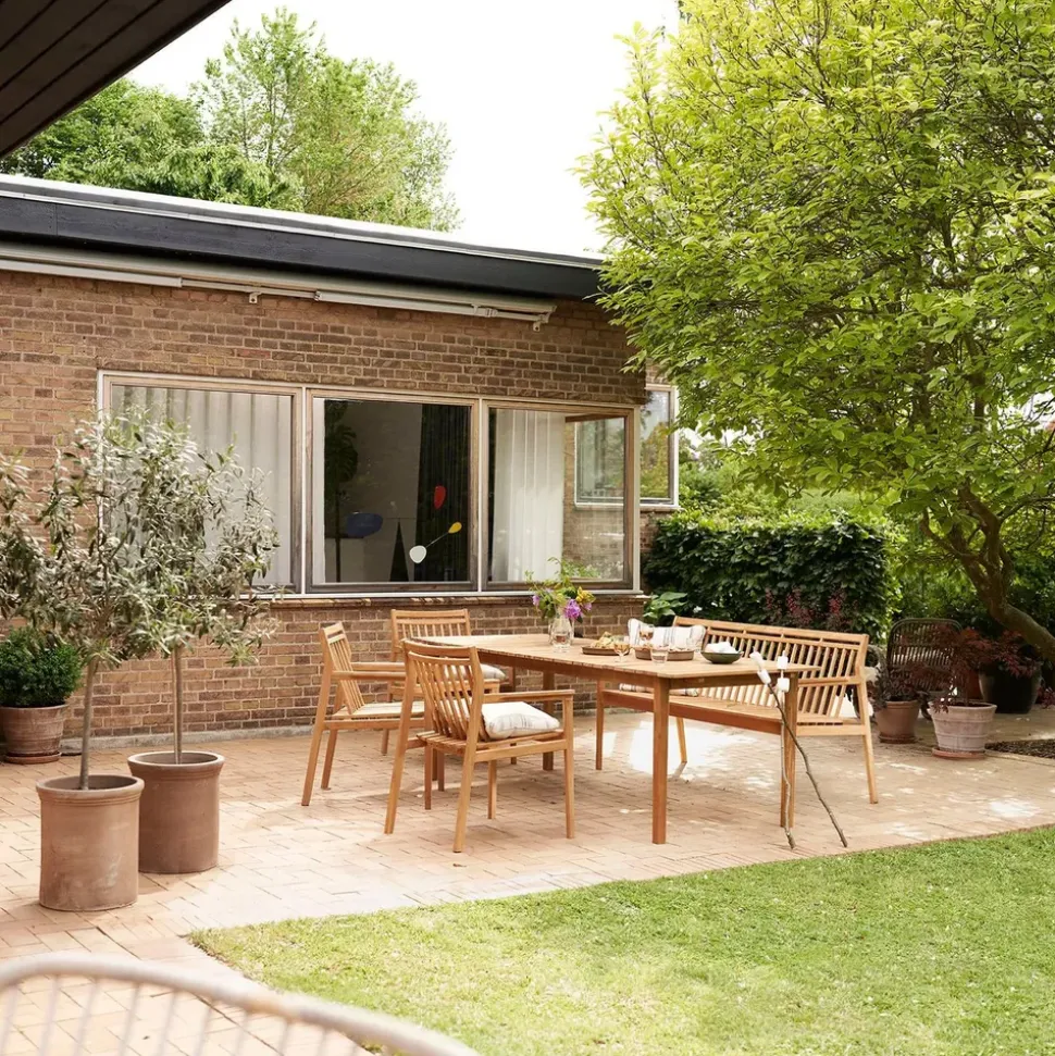 Mit seinem schlichten, aber durchdachten Design passt der M2 Together in jeden Außenbereich. Verwenden Sie ihn als natürlichen Mittelpunkt für sommerliche Mittagessen und lange Abende unter dem Sternenhimmel. Kombinieren Sie ihn mit den Gartenstühlen von FDB Møbler für ein komplettes Erscheinungsbild, oder lassen Sie ihn als elegantes Statement im Garten stehen. Die natürliche Struktur des Holzes verleiht dem Tisch einen warmen und einladenden Charakter, der mit der Zeit nur noch schöner wird.