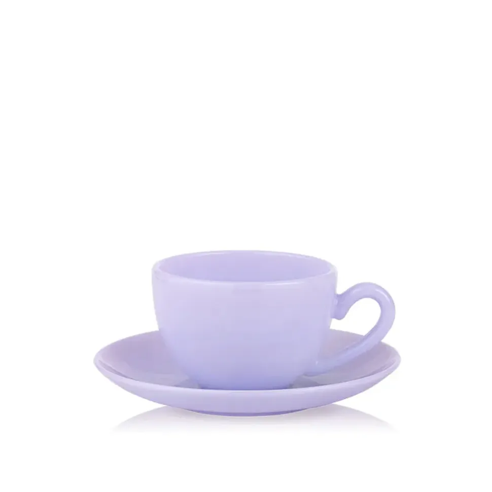 Schöne Tasse mit Untertasse aus Kollektion MILK. Alle Produkte der MILK-Kollektion sind aus Opalglas mit feinen Pastellfarben hergestellt. Opalglas ist bekannt für sein „nebliges“ Aussehen, das den einzigartigen milchigen Look verleiht, der die Inspiration für den Namen der Kollektion MILK war. Mit ihrem zarten Aussehen eignen sich die Tassen sowohl für den Nachmittagskaffee als auch für die Geburtstagstafel.