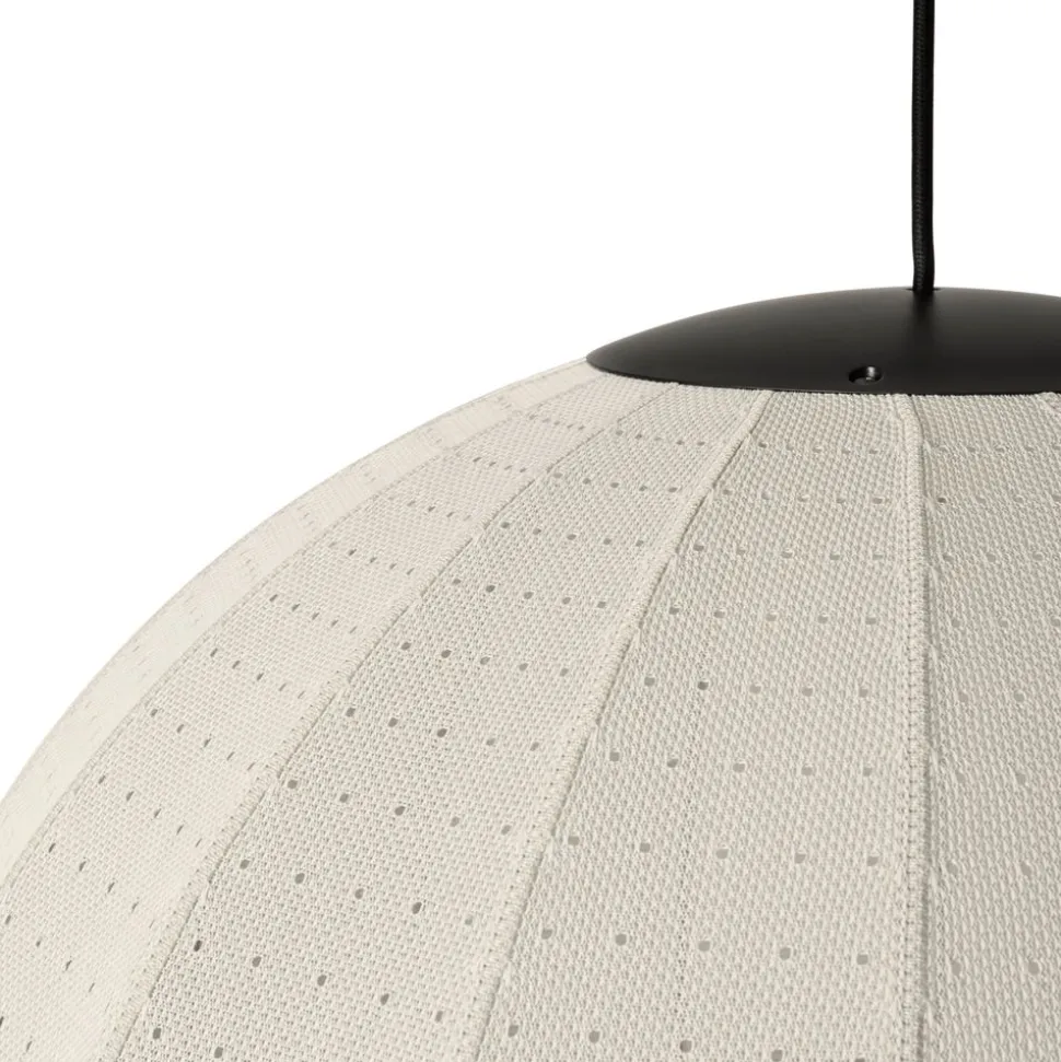 Mollis Ø65 von Made By Hand ist eine Pendelleuchte, die sich durch ihren einzigartigen 3D-gestrickten Lampenschirm auszeichnet. Die von Aleksej Iskos entworfene Leuchte hat einen minimalistischen Ansatz, bei dem der gestrickte Schirm wie ein weicher Pullover über einen Metallrahmen gezogen wird. Die leichte Konstruktion sorgt für ein raffiniertes Aussehen, während das funktionelle Design eine effiziente Beleuchtung gewährleistet, wobei das LED-Licht hauptsächlich nach unten gerichtet ist, während es sanft durch den Stoff gestreut wird, um eine gemütliche Atmosphäre zu schaffen. Das Strickmuster unterstützt den architektonischen Charakter der Leuchte und unterstreicht ihre zeitlose Form.