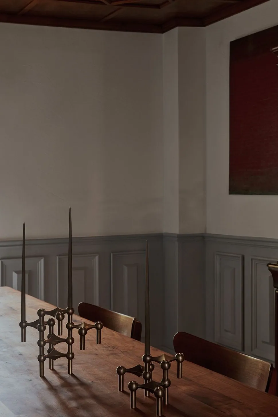 Dieser neu aufgelegte Nagel-Kerzenhalter vereint Vergangenheit und Gegenwart mit Respekt vor den Originalzeichnungen und der Designsprache der damaligen Zeit. Perfekt als künstlerischer Blickfang auf dem Esstisch, im Regal oder als Teil eines größeren dekorativen Tableaus, dient der Nagel-Kerzenhalter nicht nur als praktisches Objekt, sondern auch als Statement-Stück. Mit seinen klaren Linien und historischen Wurzeln ist er ein echtes Sammlerstück, das Designliebhaber auf der ganzen Welt mit seiner raffinierten Form und seiner Fähigkeit, sich an jedes Dekor anzupassen, verführt.